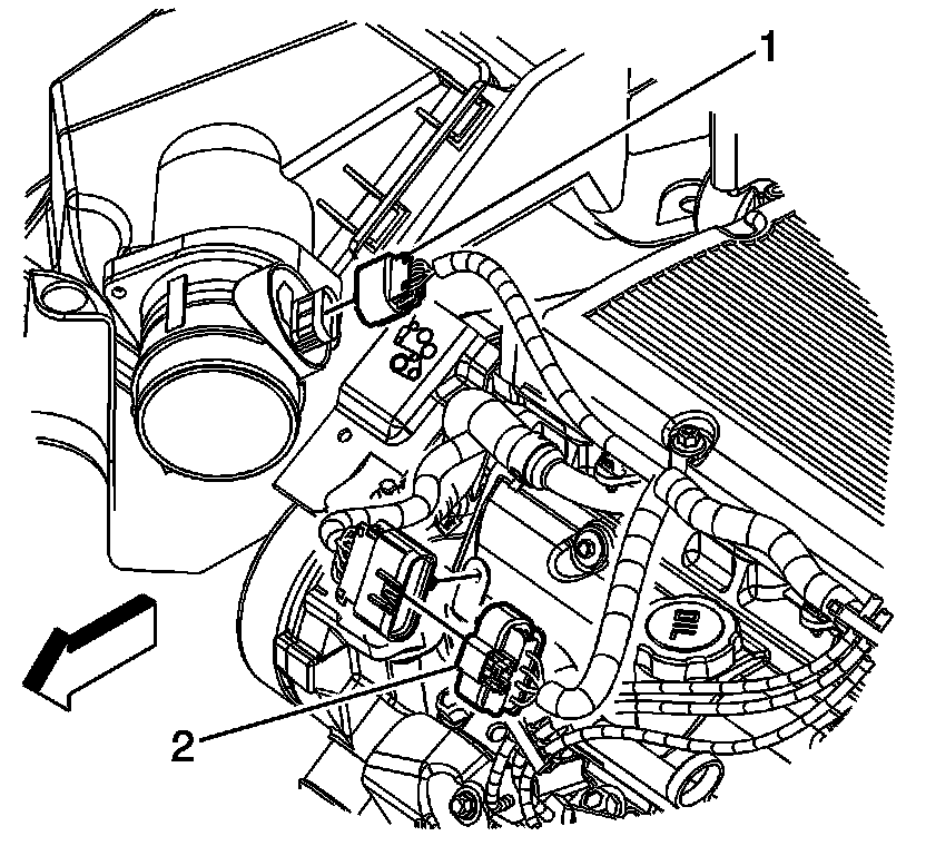 2. Disconnect the mass air flow (MAF) sensor electrical connector (1).