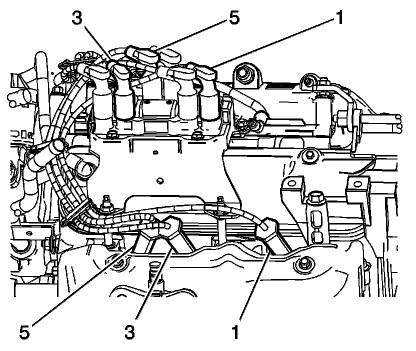 3. Install the spark plug wires (1, 3, and 5) to the engine right side spark plugs.