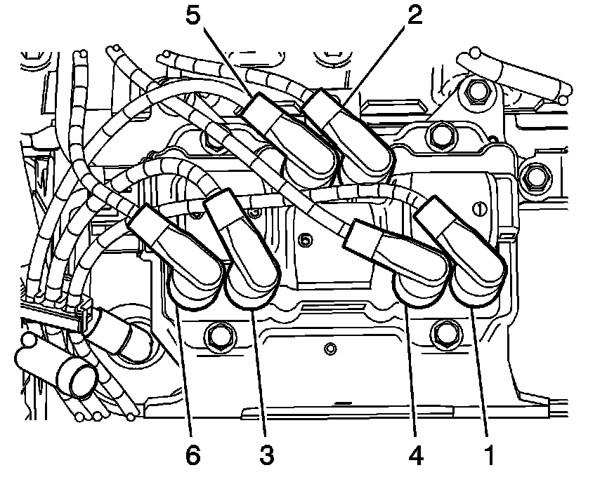 1. Install the spark plug wires (1-6) to the engine.