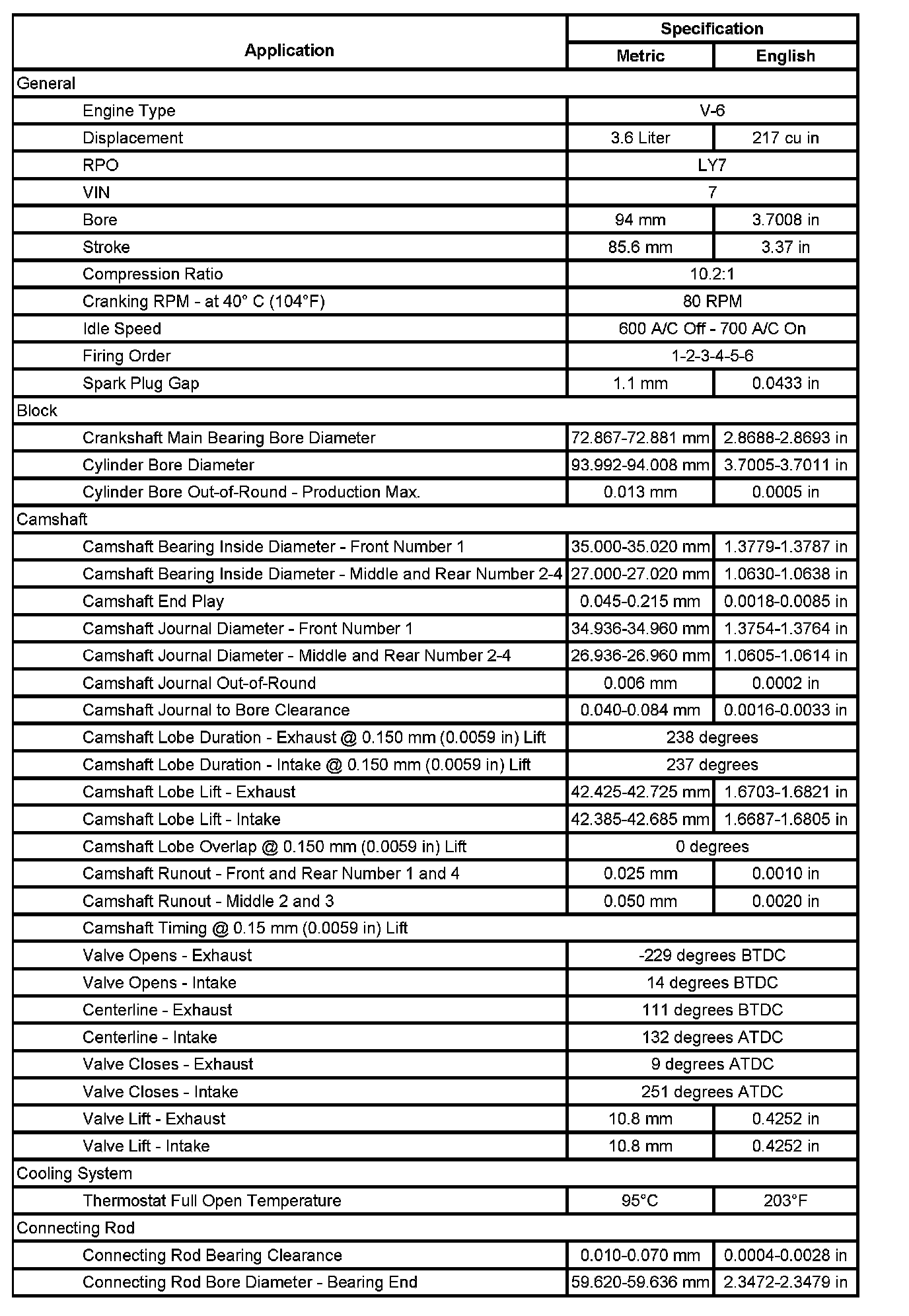 Engine Mechanical Specifications
