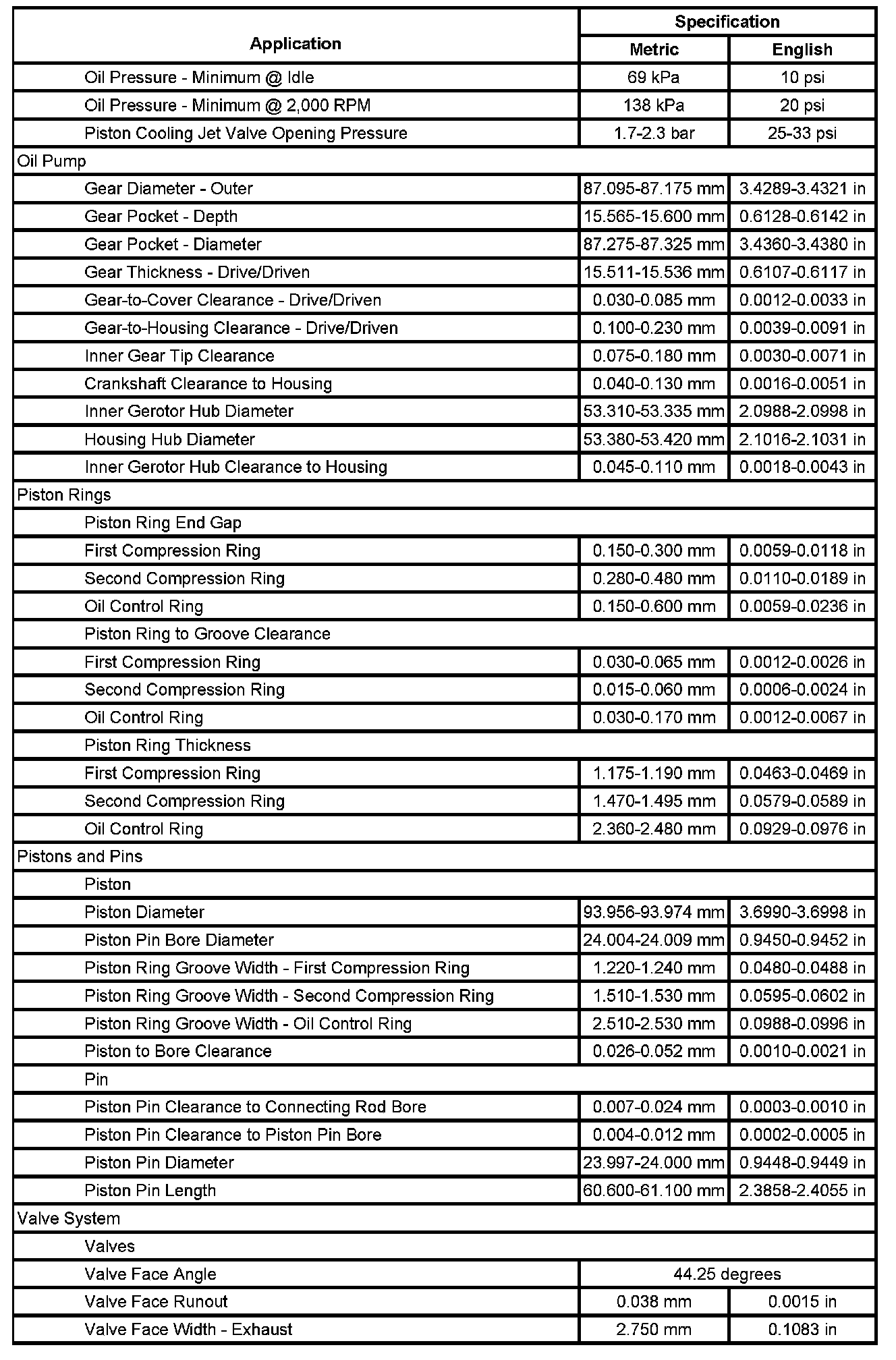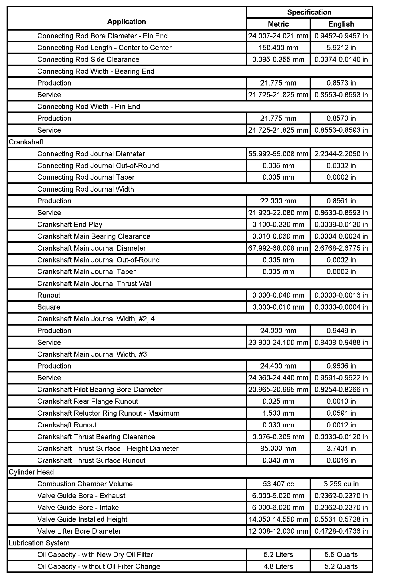 Engine Mechanical Specifications (Part 2):
