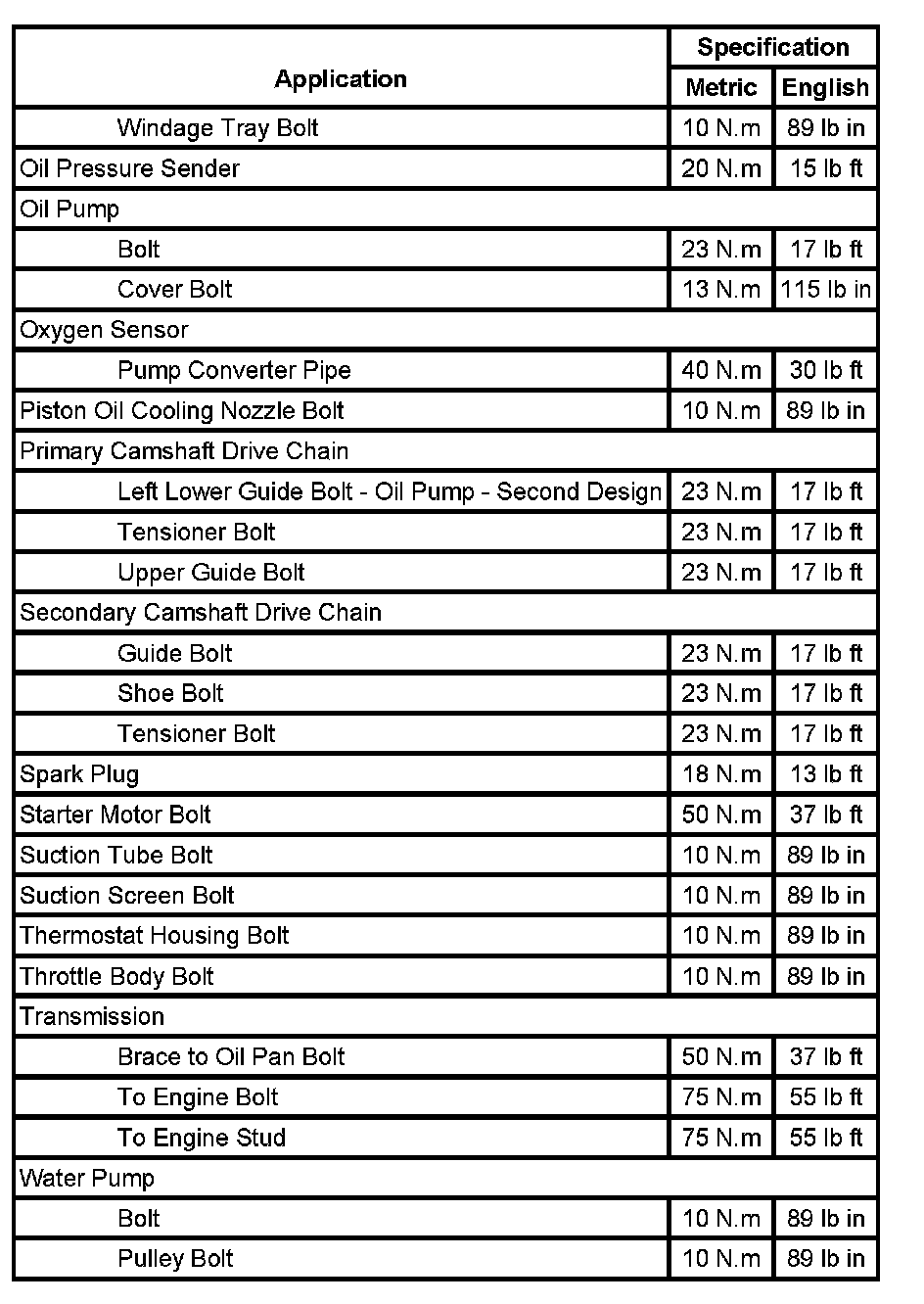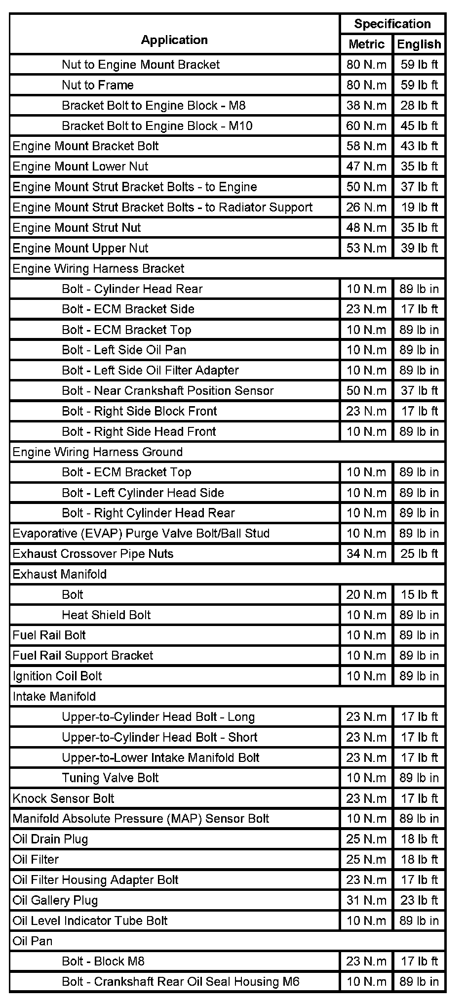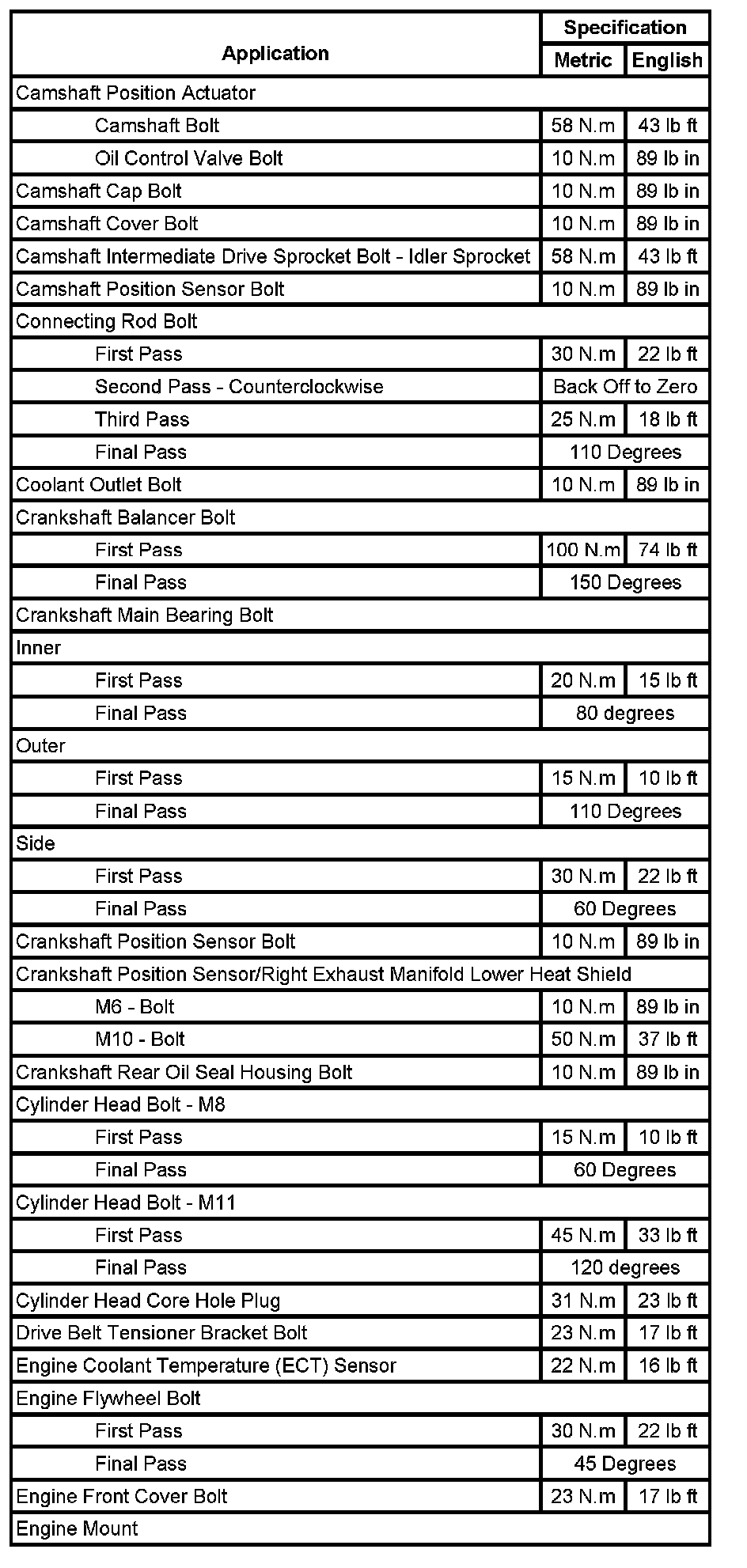 Fastener Tightening Specifications (Part 1):