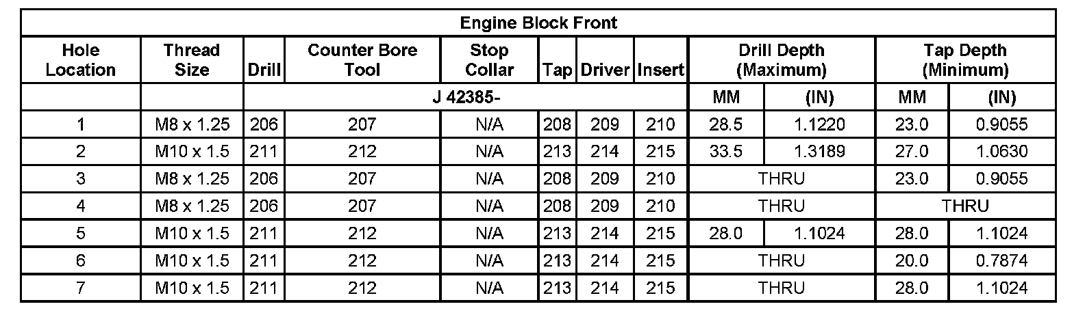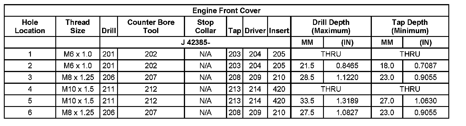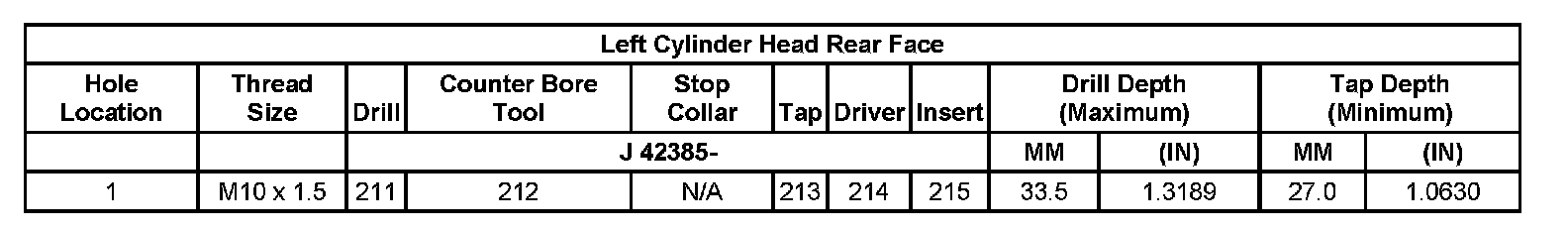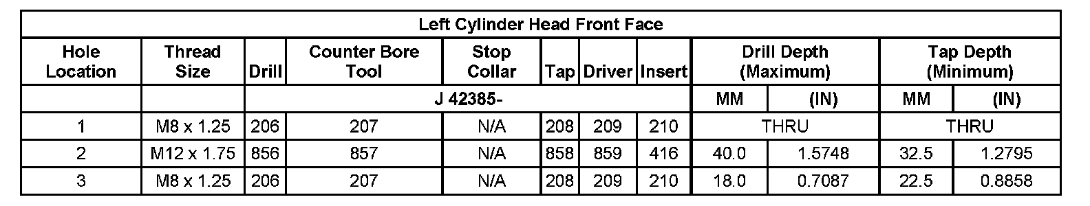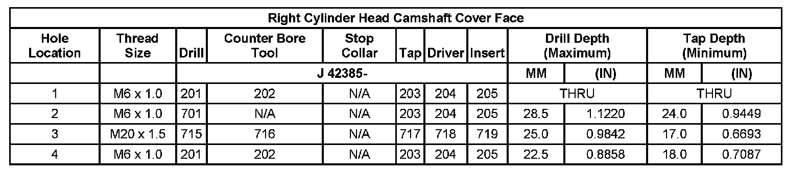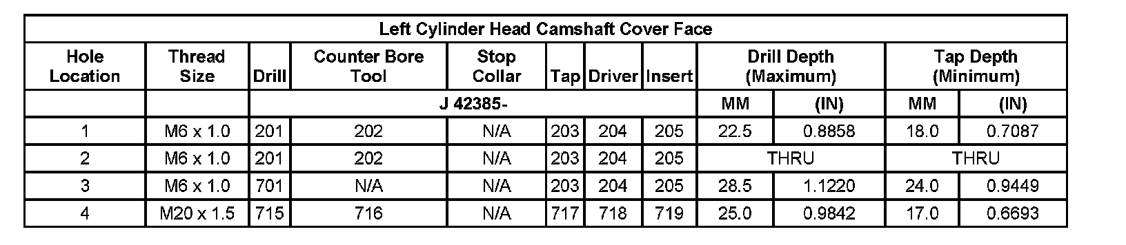 Thread Repair SpecificationsLeft Cylinder Head Camshaft Cover Face: