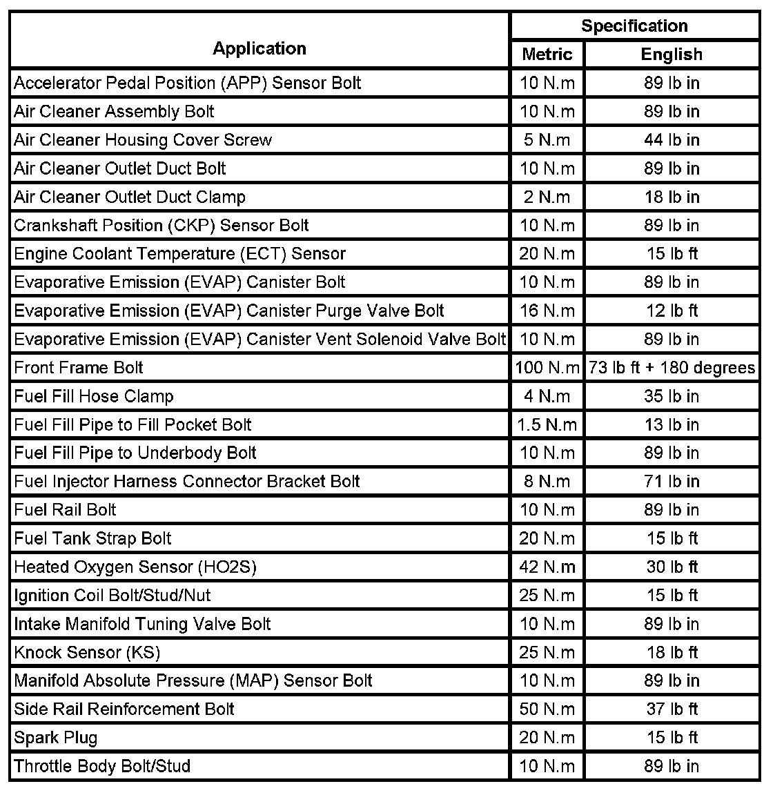 Fastener Tightening Specifications