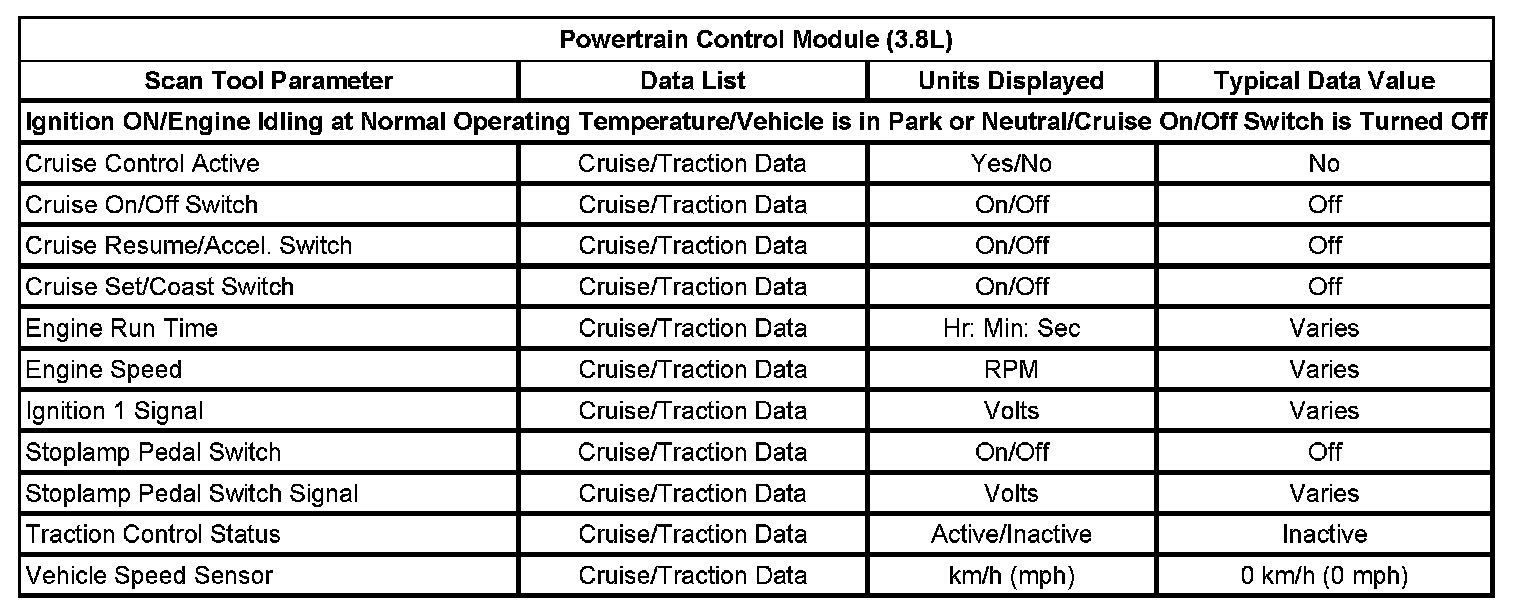 Home >> Pontiac >> 2007 >> Grand Prix V6-3.8L >> Repair and Diagnosis >> Cruise Control >> Testing and Inspection >> Scan Tool Testing and Procedures >> Scan Tool Data List