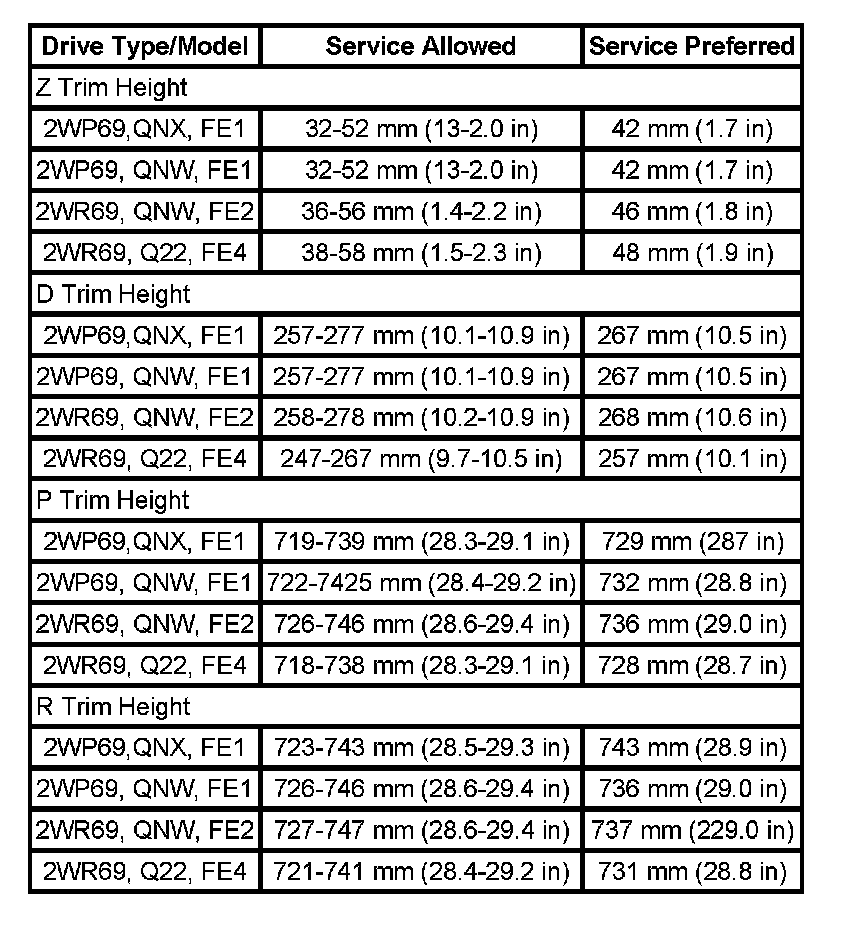 Trim Height Specifications: