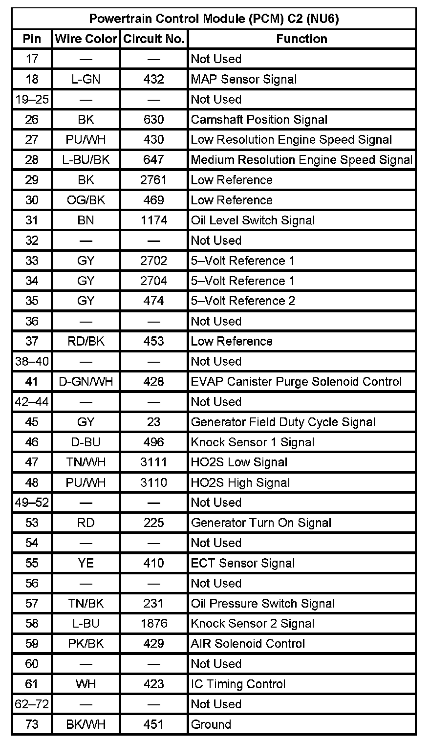 Powertrain Control Module (PCM) C2 (NU6) (Pin 17 To 73):