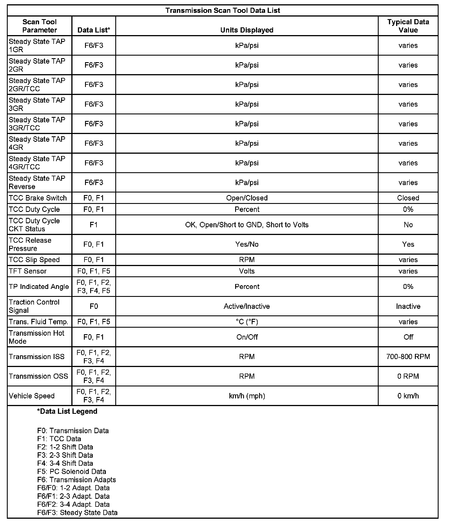 Only the parameters listed below are used in this service data for diagnosing. If a scan tool displays other parameters, the values are not recommended by General Motors for use in diagnosis.