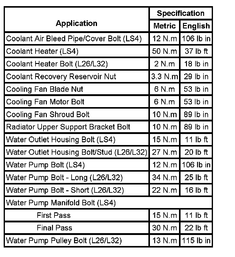 Fastener Tightening Specifications: