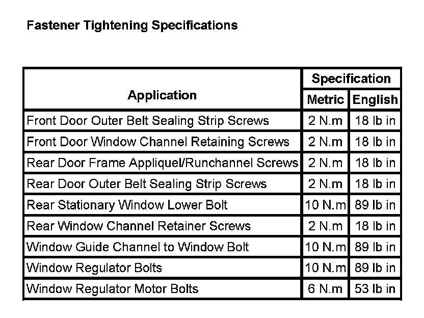 Fastener Tightening Specifications: