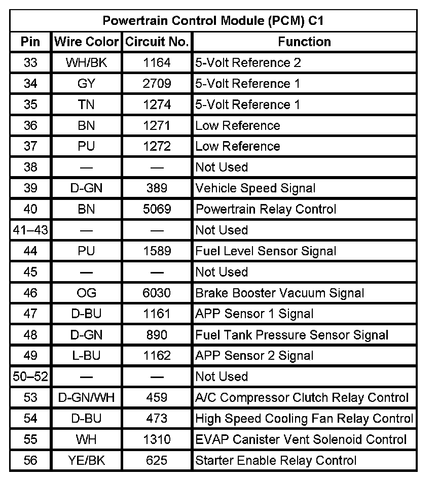 Powertrain Control Module (PCM) C1 (Pin 33 To 56):