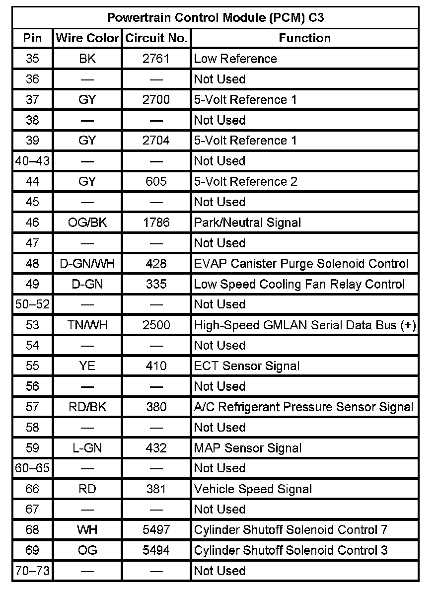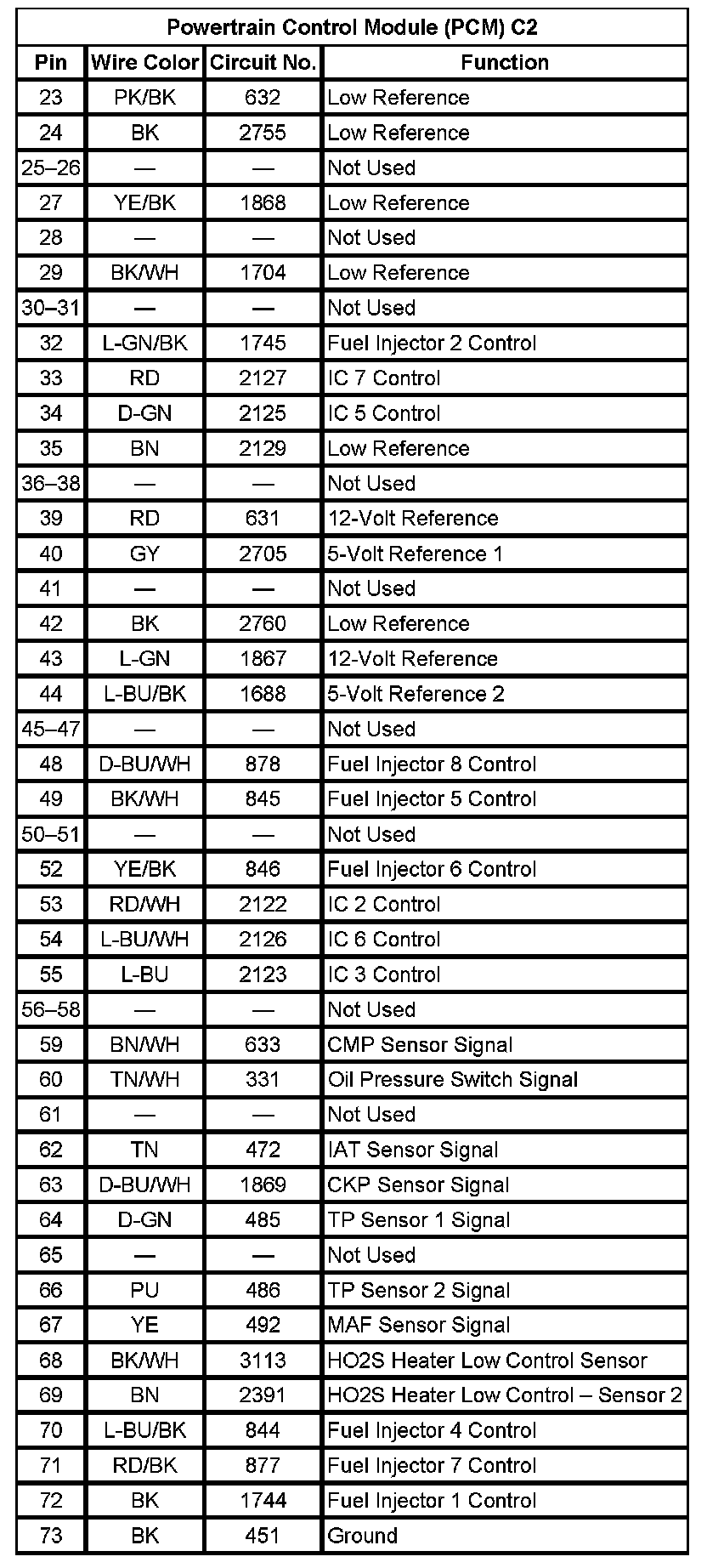 Powertrain Control Module (PCM) C2 (Pin 23 To 73):