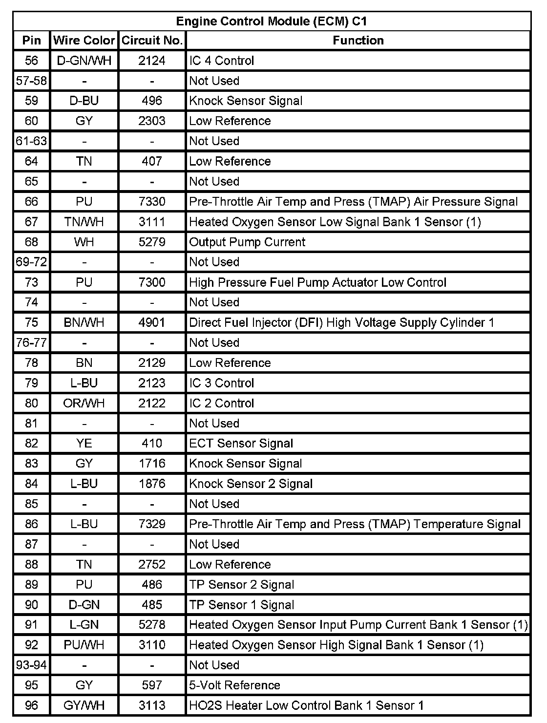Engine Control Module (ECM) C1 (Pin 56 To 96):