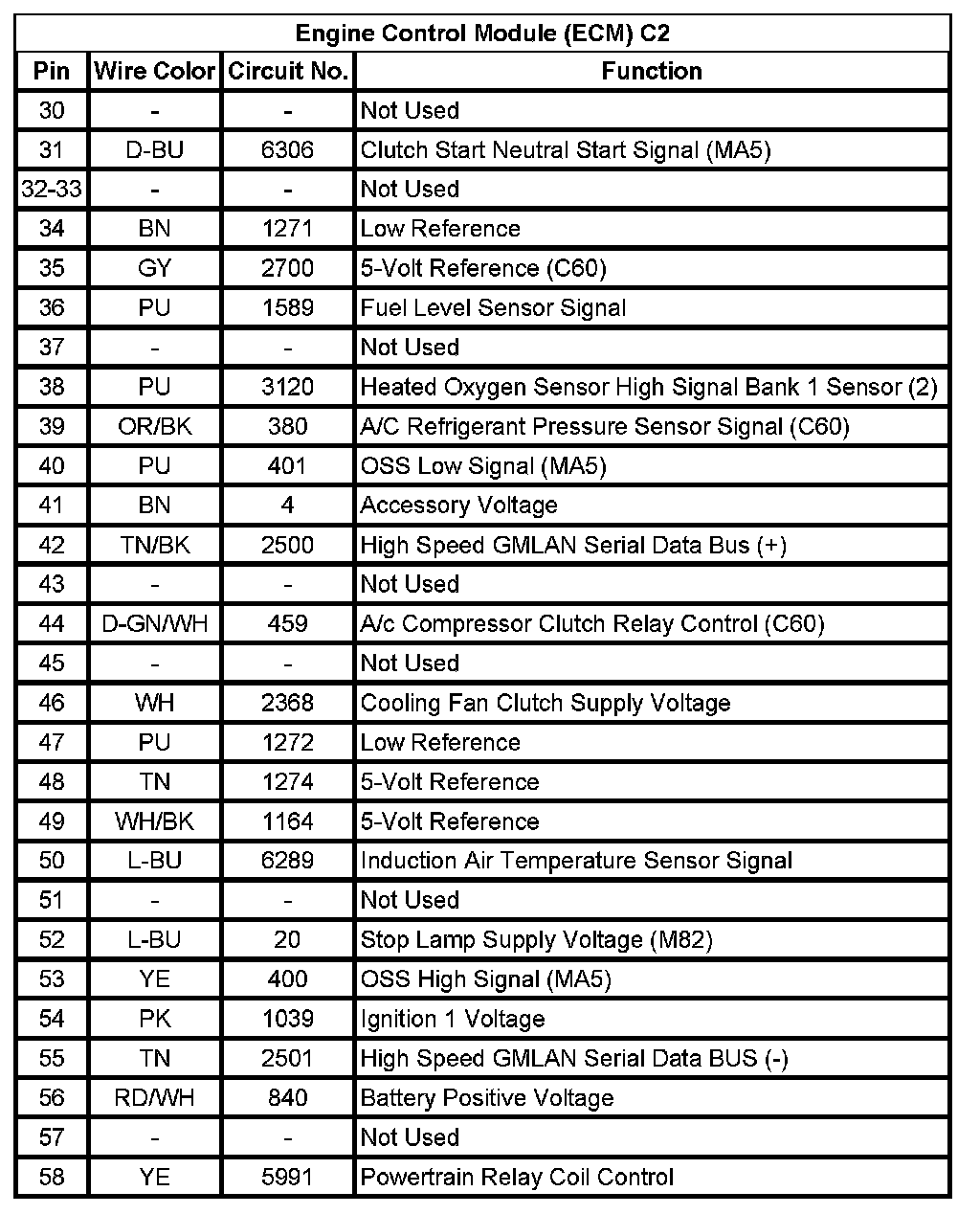 Engine Control Module (ECM) C2 (Pin 30 To 58):