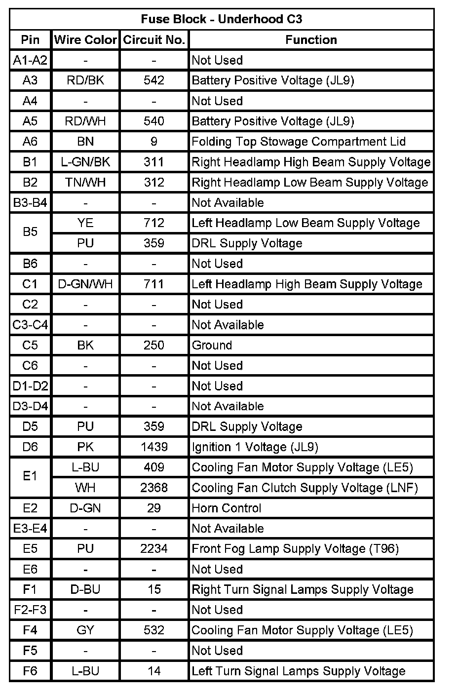 Fuse Block - Underhood C2 (Pin B10 To F12):