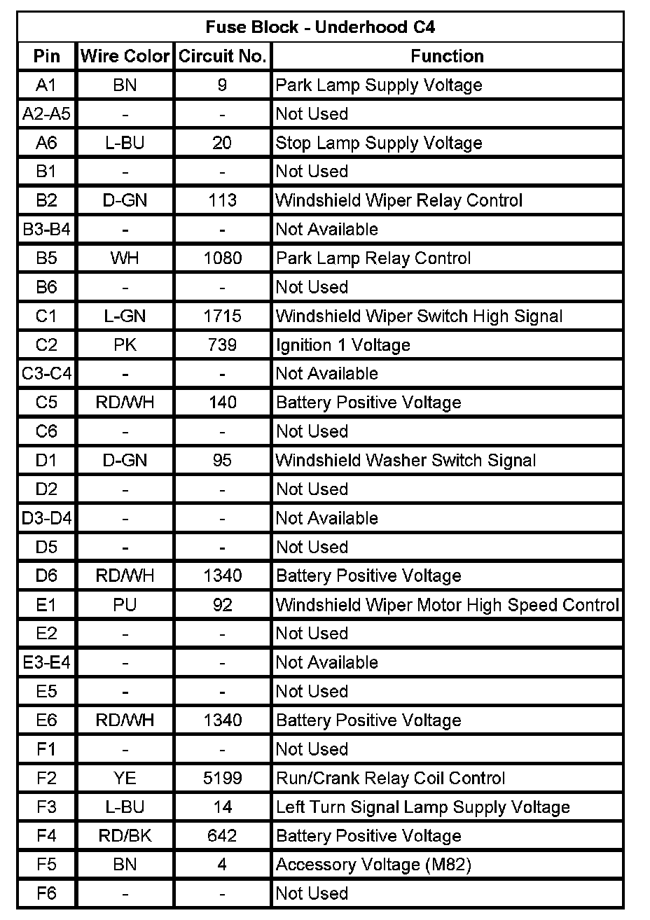 Fuse Block - Underhood C1 (Pin C10 To F12):