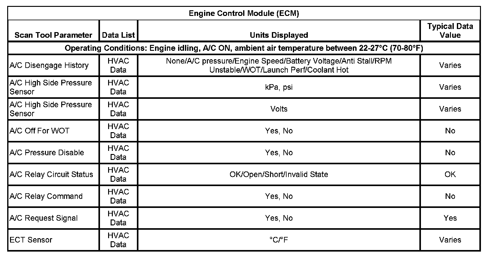 Scan Tool Data List