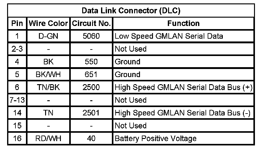 Data Link Connector: Diagrams