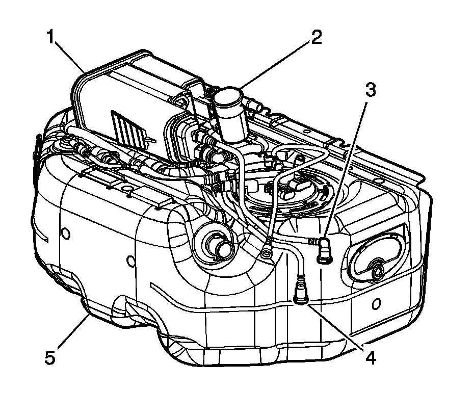 The fuel pressure regulator (2) is contained in the fuel pump module near the fuel pump outlet. The fuel pressure regulator is a diaphragm relief valve. The diaphragm has fuel pressure on one side and regulator spring pressure on the other side. The fuel pressure regulator is not vacuum biased. Fuel pressure is controlled by a pressure balance across the regulator. The fuel system pressure is constant.
