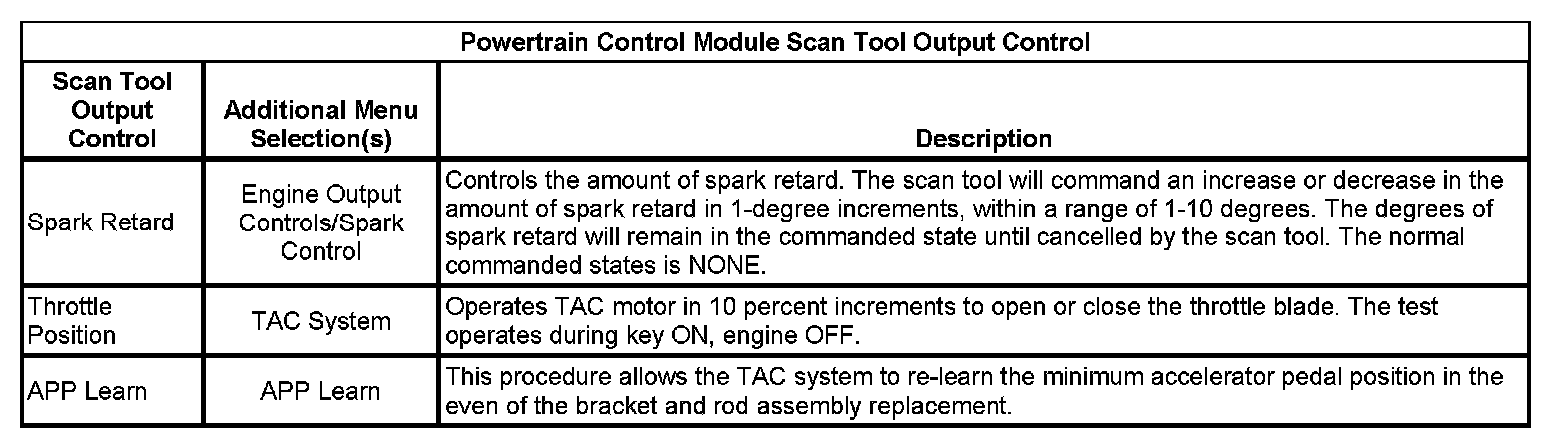 Scan Tool Output Controls