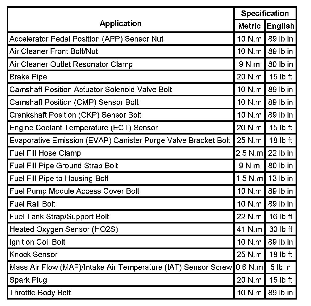 Fastener Tightening Specifications