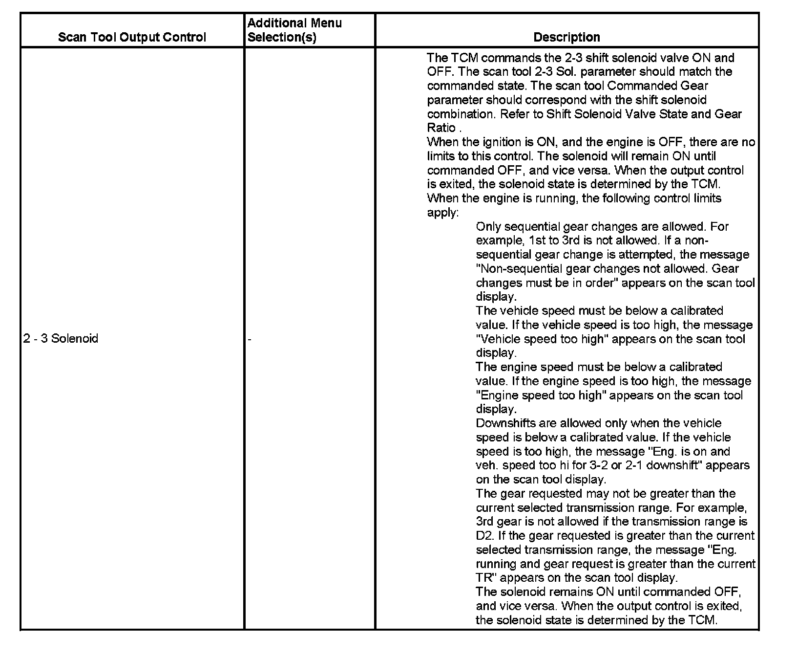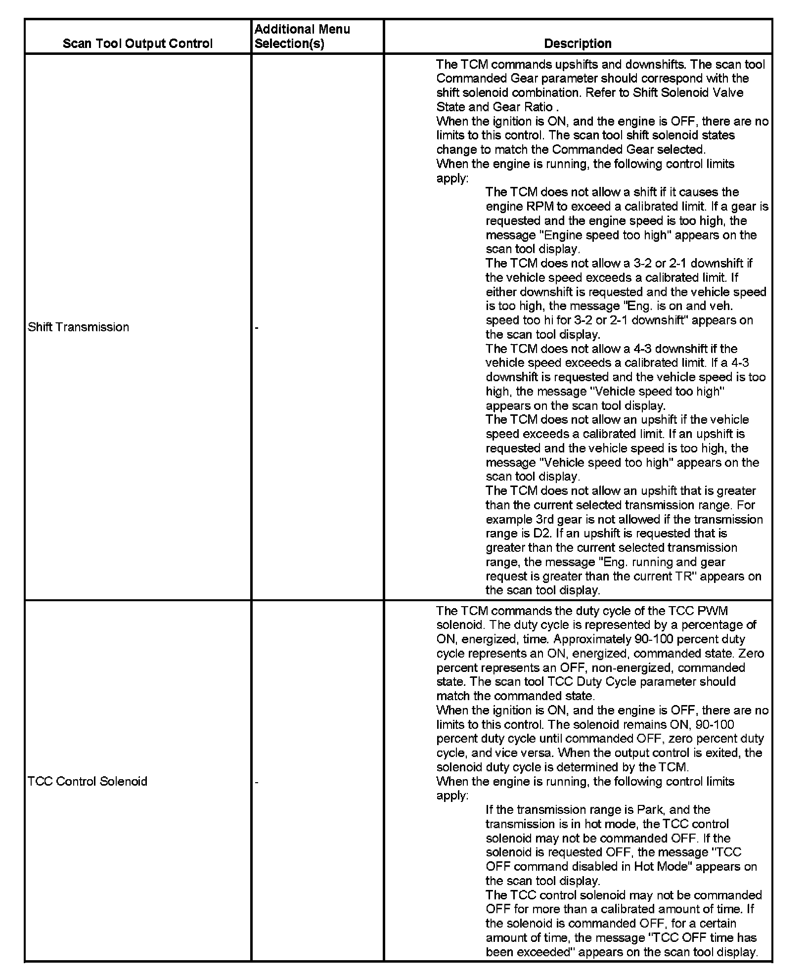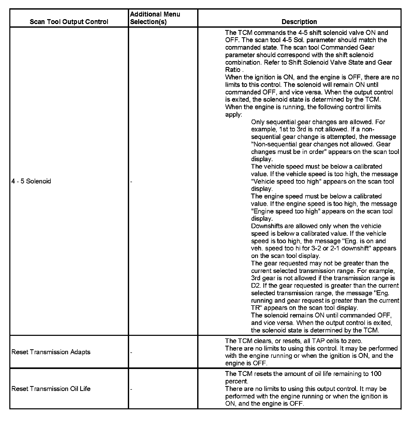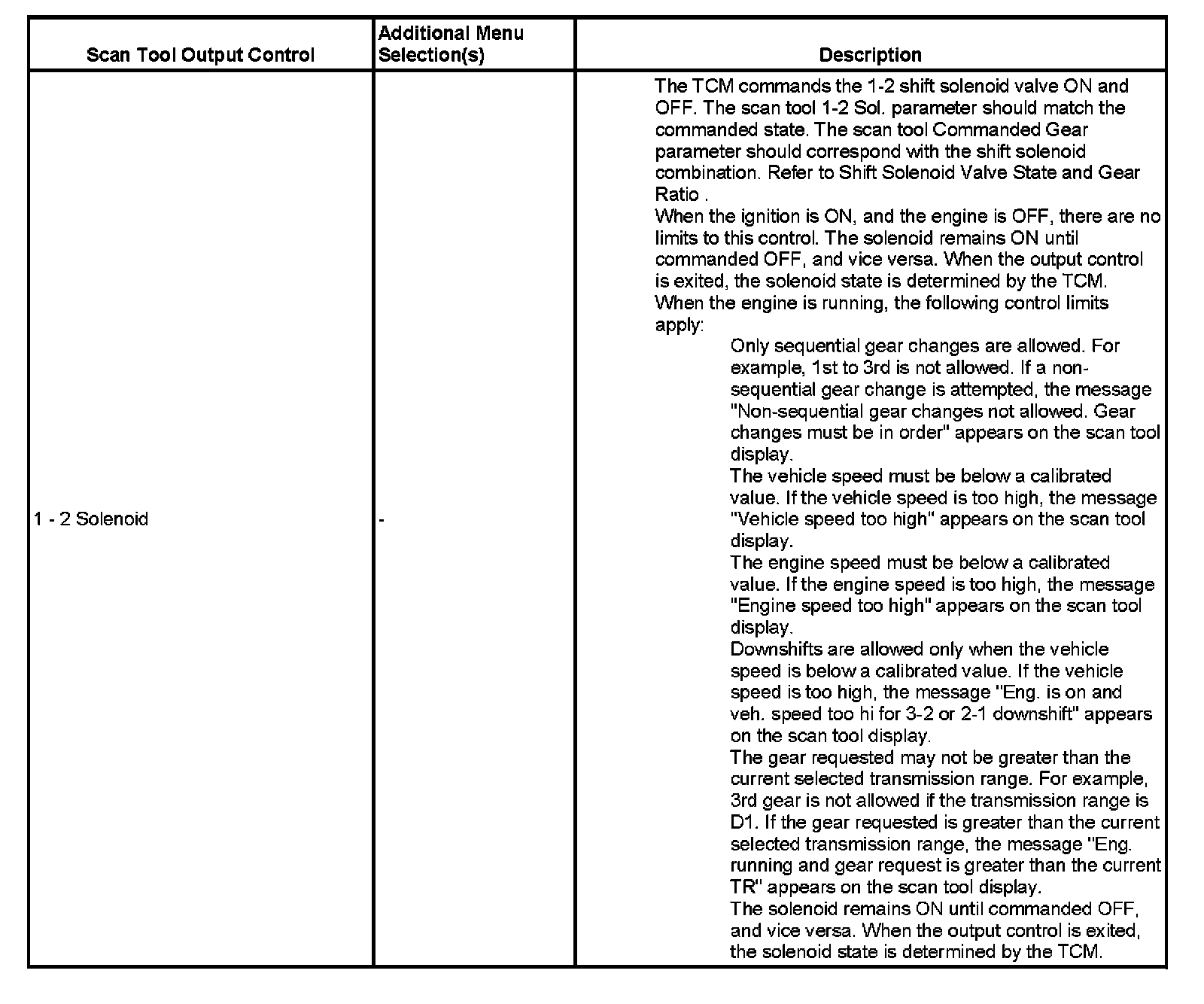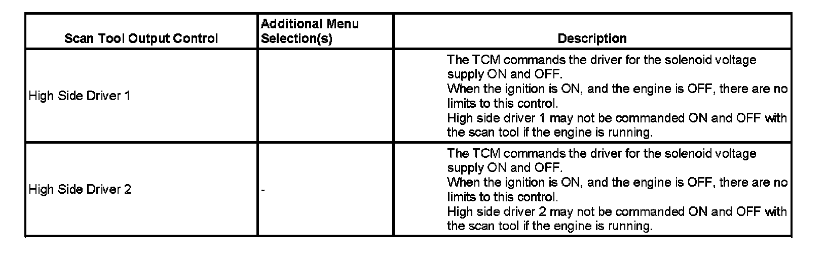 Home >> Pontiac >> 2007 >> Solstice L4-2.4L >> Repair and Diagnosis >> Powertrain Management >> Transmission Control Systems >> Testing and Inspection >> Scan Tool Output Controls