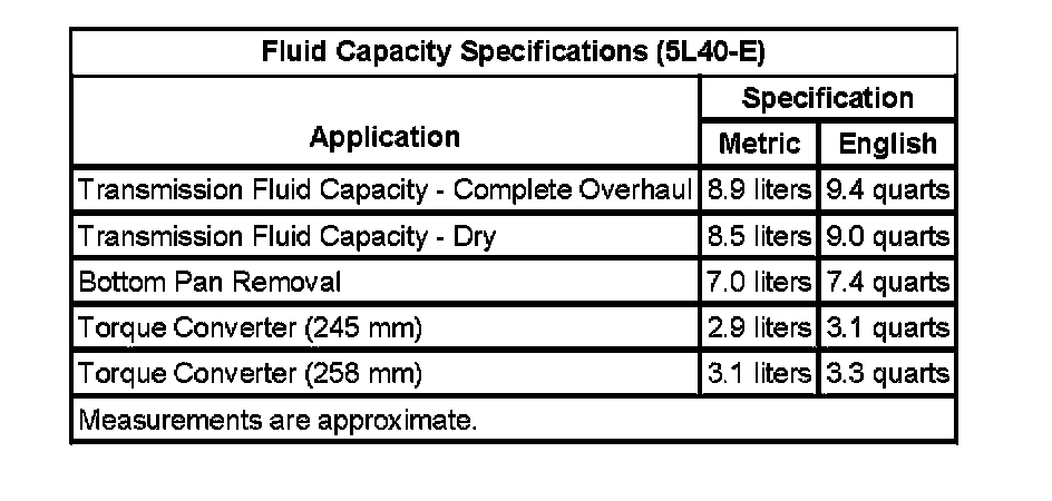 Fluid Capacity Specifications: