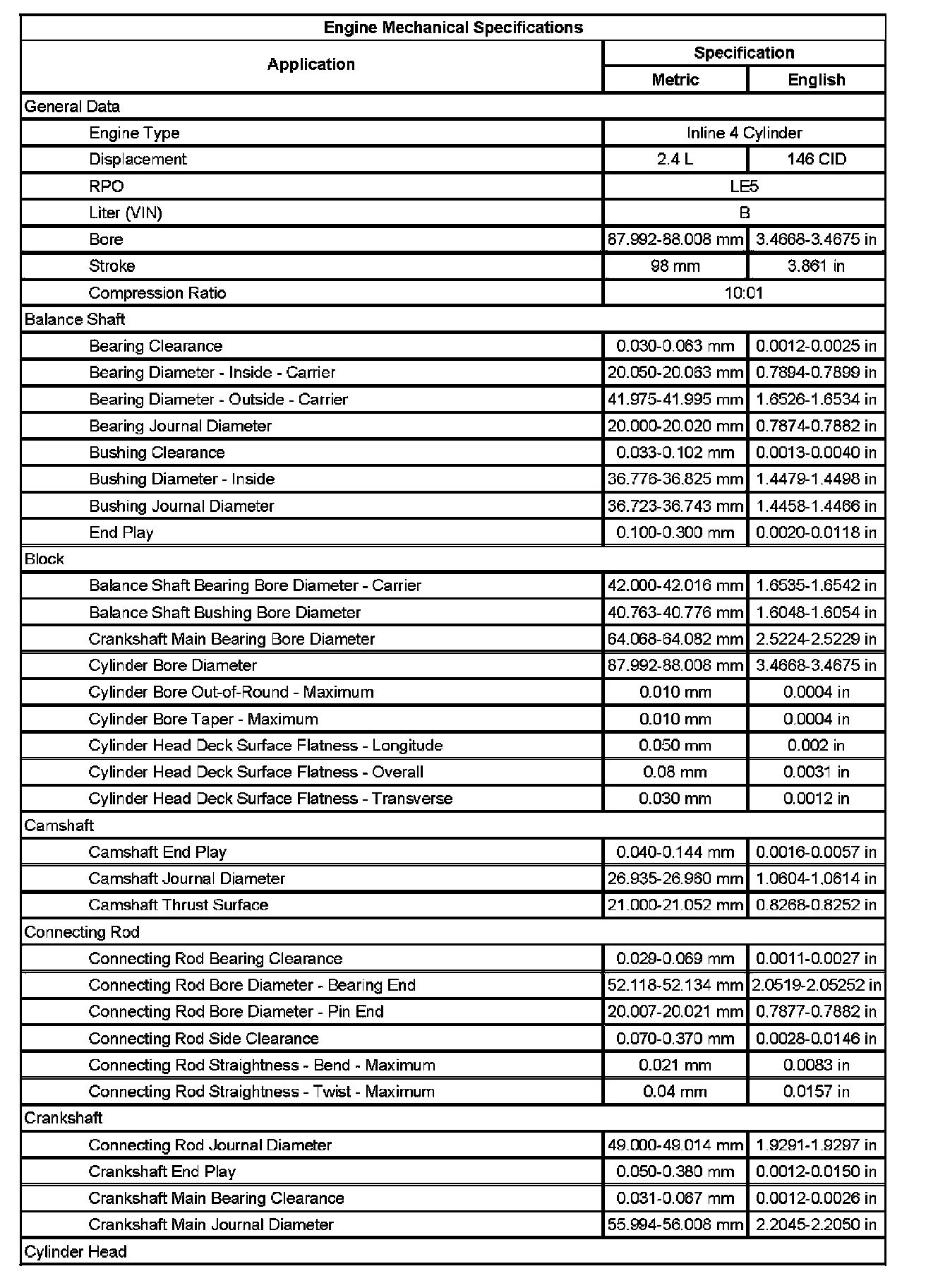 Engine Mechanical Specifications (Part 2):