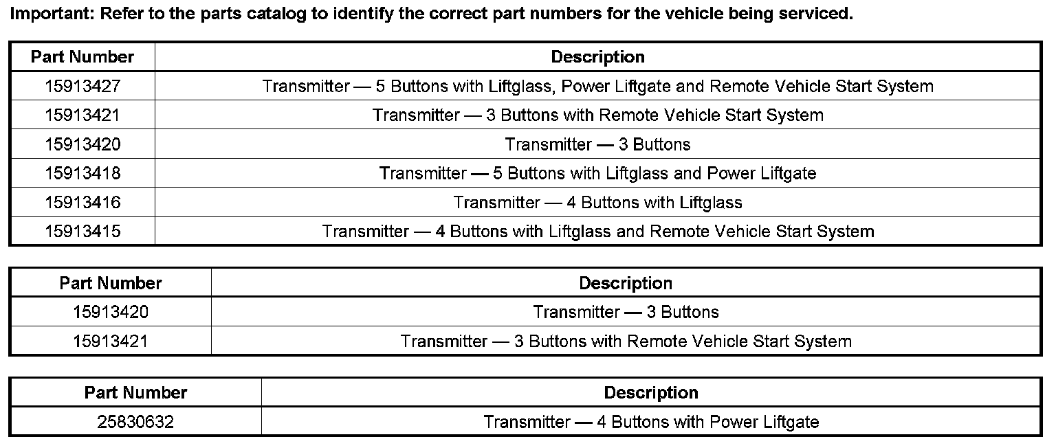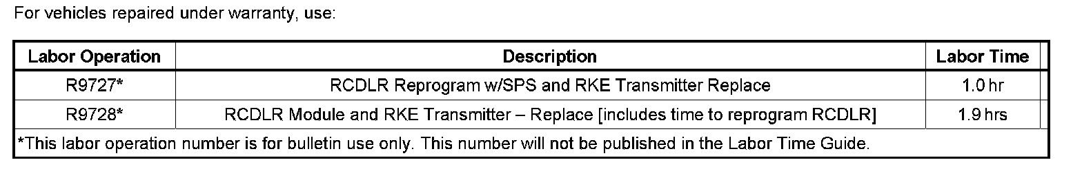 Remote Keyless Entry (RKE) Inoperative, Poor Range, Tire Pressure Monitor (TPM) Message Displayed, Remote Vehicle Start (RVS) (Replace RKE Transmitters and Reprogram Remote Control Door Lock Receiver (RCDLR))