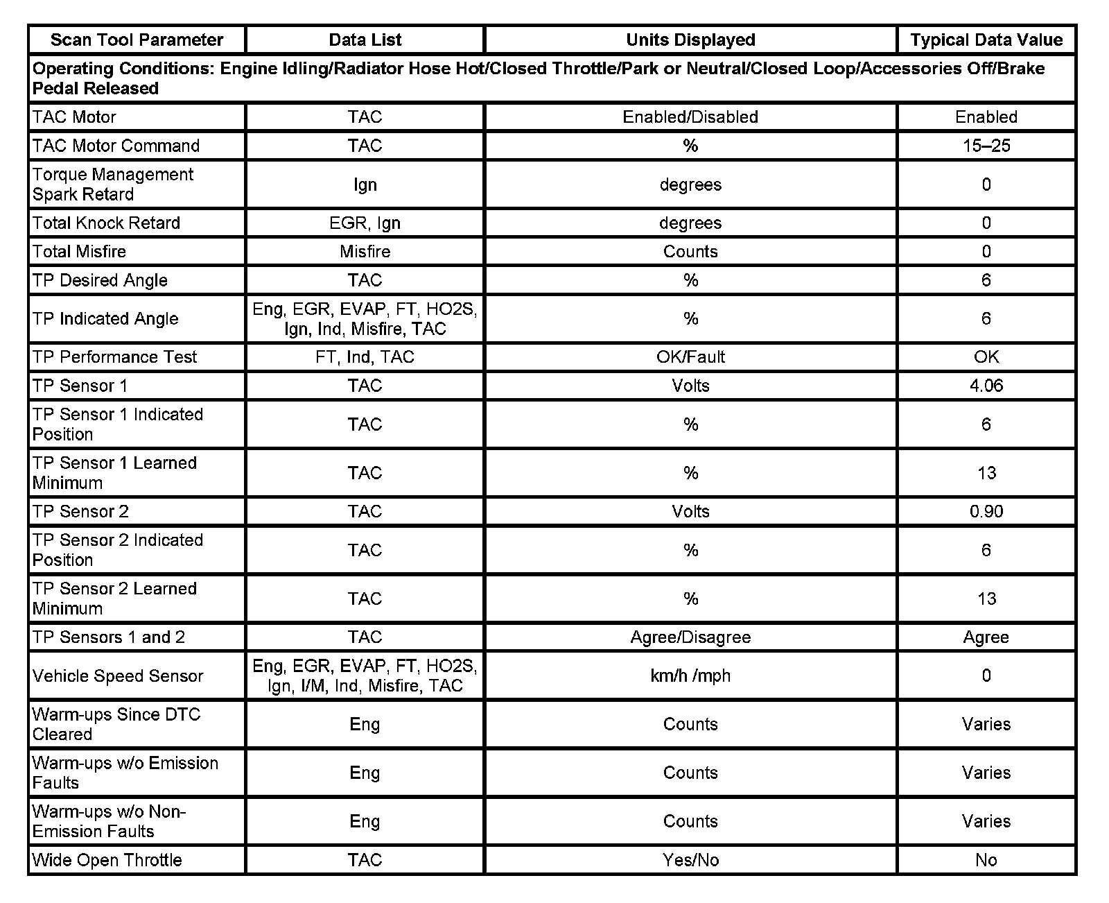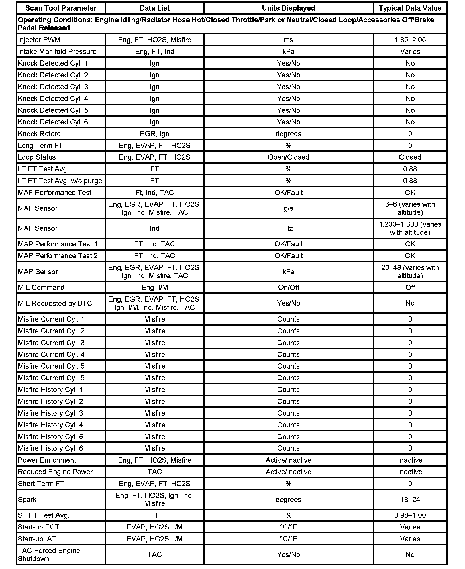 The scan tool values from a properly running engine may be used for comparison with the engine you are diagnosing. The Engine Scan Tool Data List represents values that would be seen on a normally running engine.