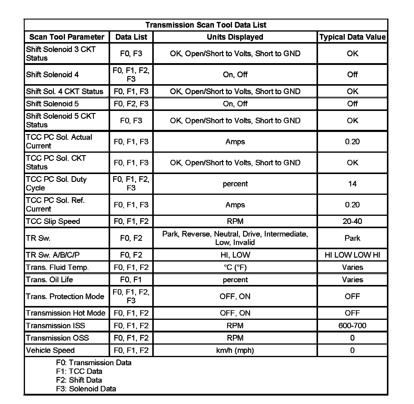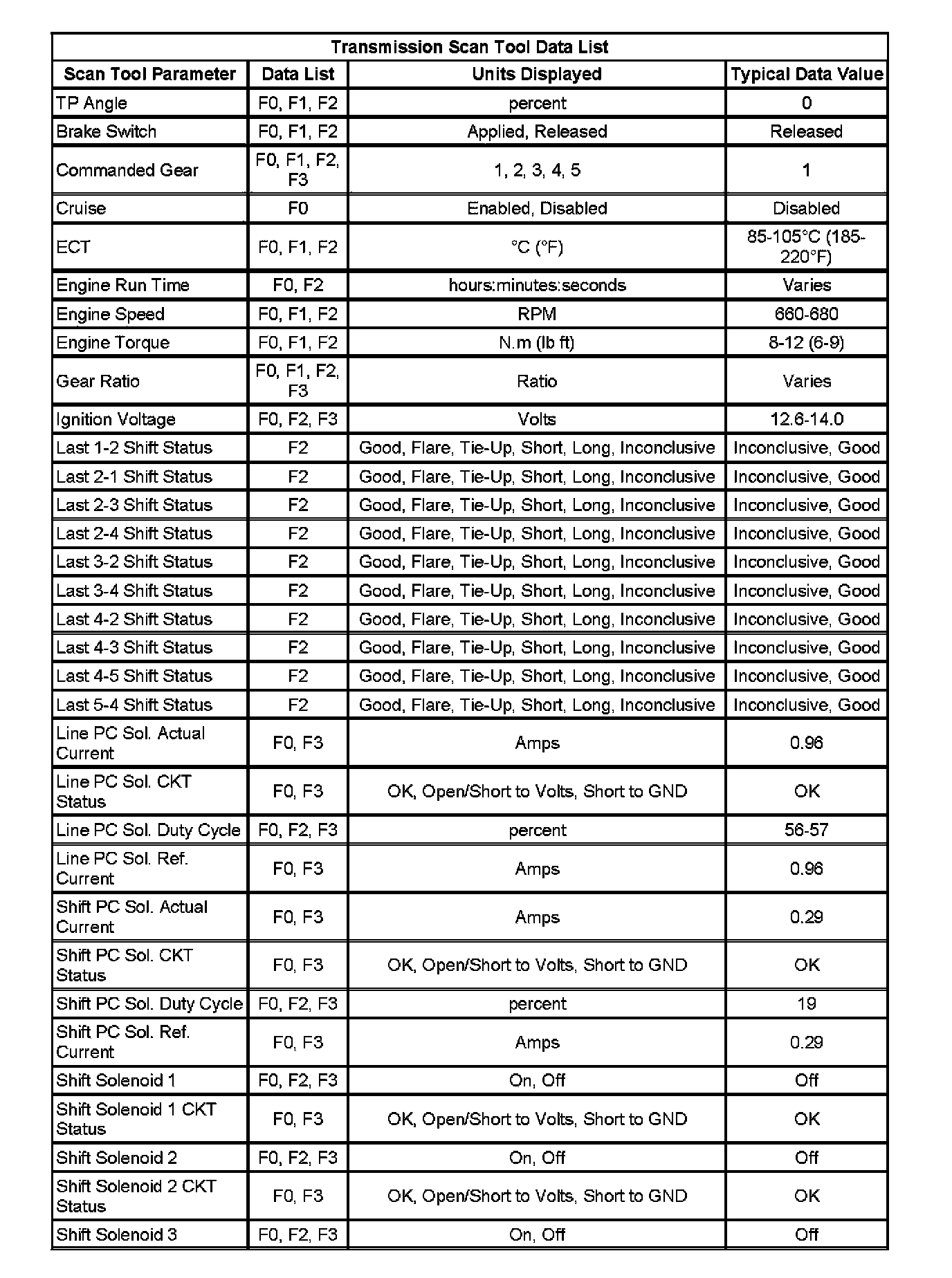 Only the parameters listed below are used in this service data for diagnosing. If a scan tool displays other parameters, the values are not recommended by General Motors for use in diagnosis.
