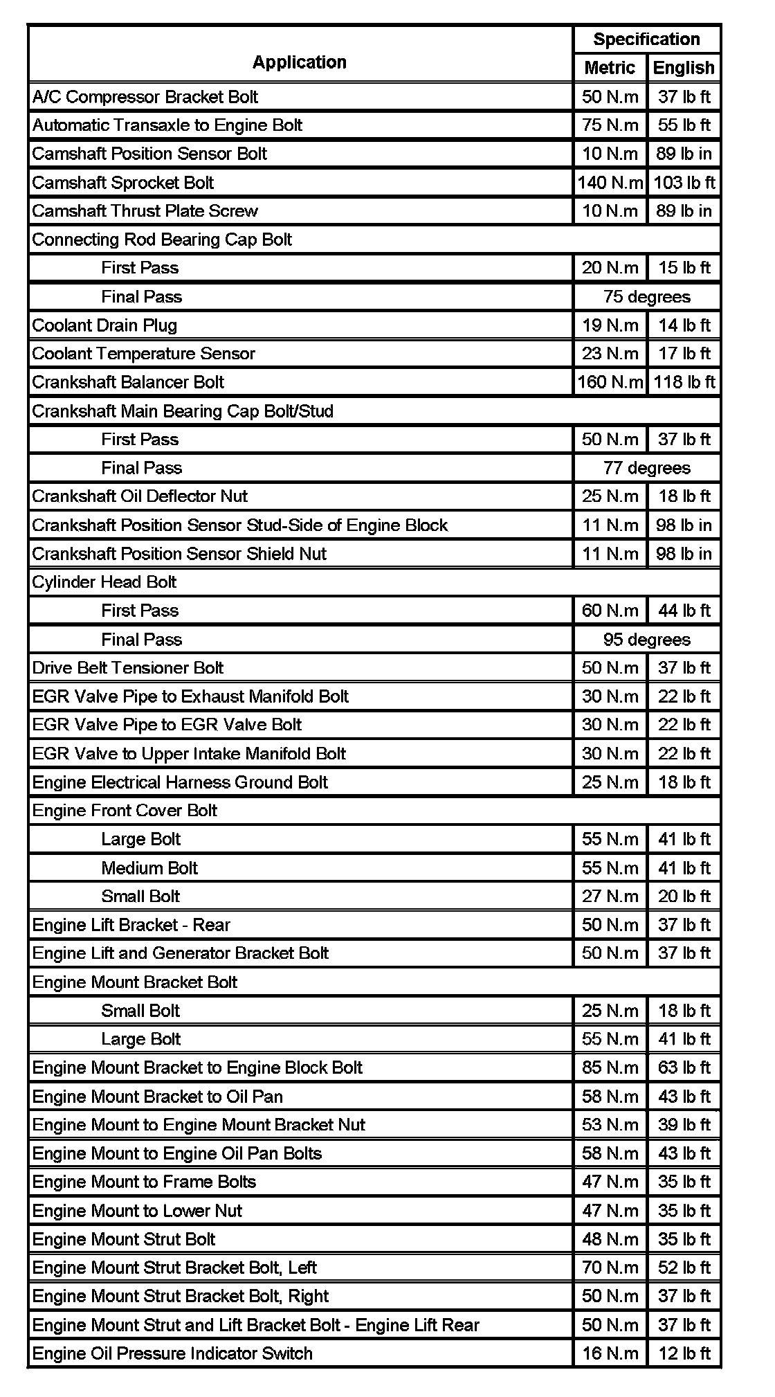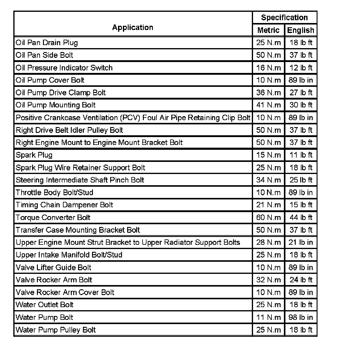 Fastener Tightening Specifications: