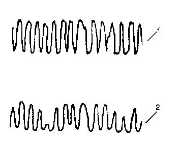 A good TWC catalyst will show a very active output voltage on the pre-catalyst heated oxygen sensor (1). A good catalyst, 95 percent hydrocarbon conversion, will show a relatively flat output voltage on the post-catalyst heated oxygen sensor (2).
