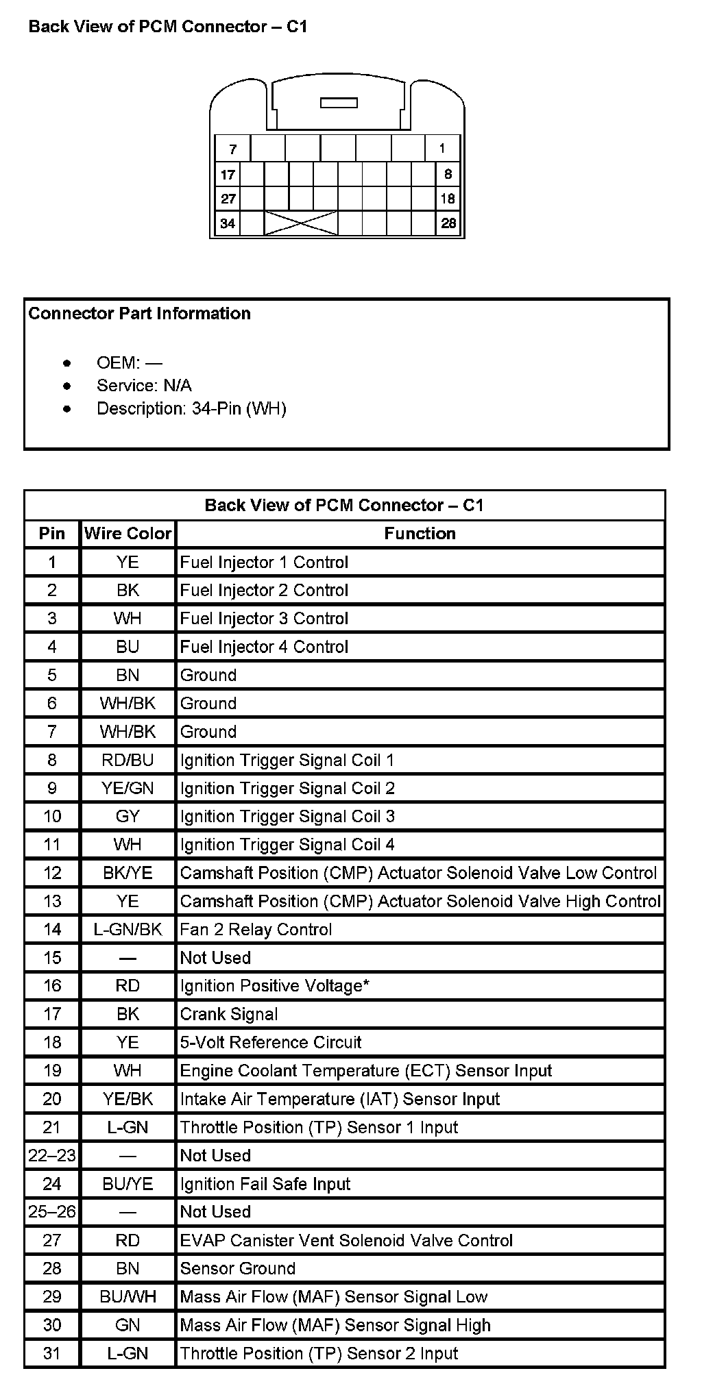Back View Of PCM Connector - C1 (Part 2):