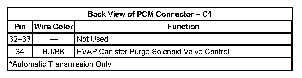 Back View of PCM Connector - C1