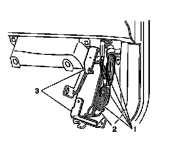 2. Remove the 2 retainers from the PCM close out panel (1) below the instrument panel (I/P) compartment door.