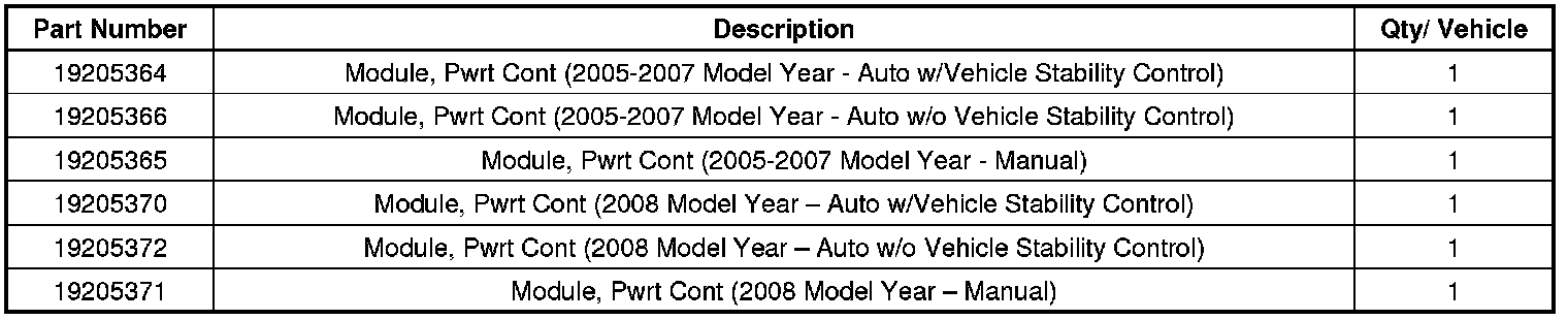 The pound # in the part numbers below represent digits (0-9) on the actual part installed in the vehicle. These parts will get a new PCM, according to the matrix.