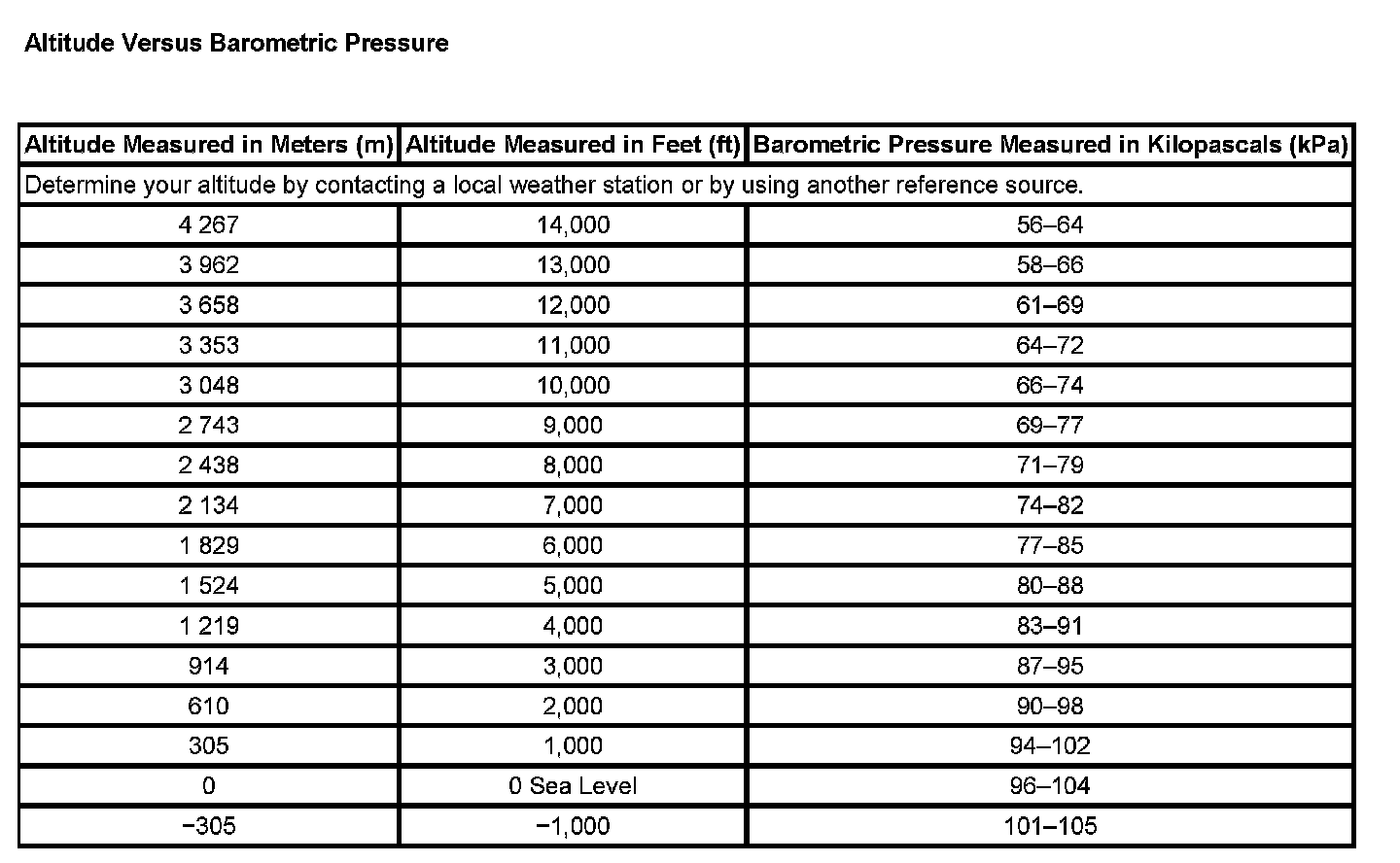 Altitude Versus Barometric Pressure: