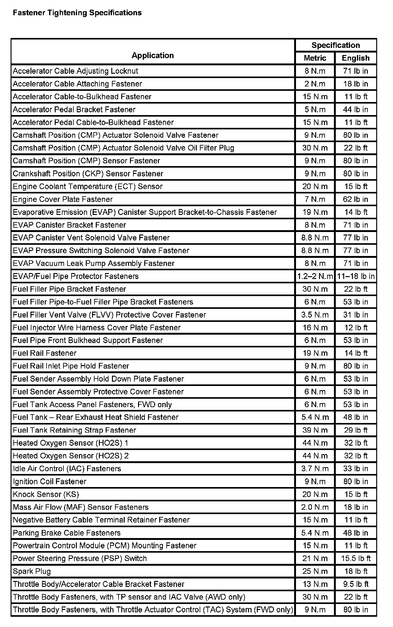 Fastener Tightening Specifications (Part 1):