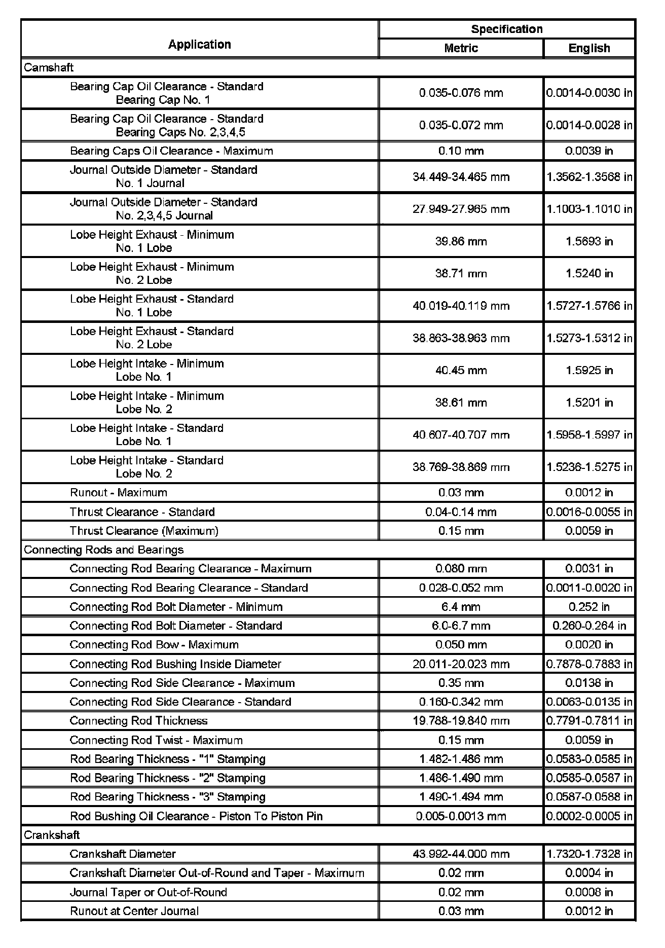Engine Mechanical Specifications (Part 2):