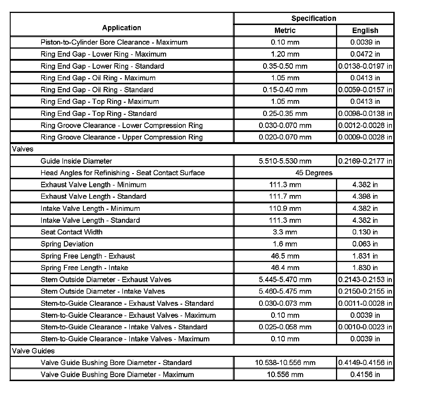 Engine Mechanical Specifications