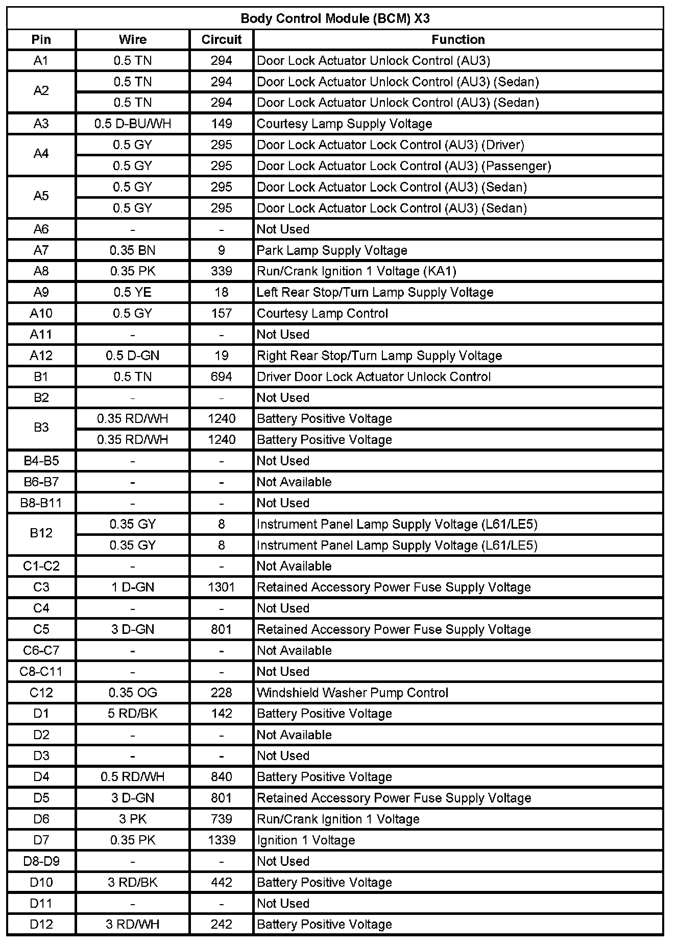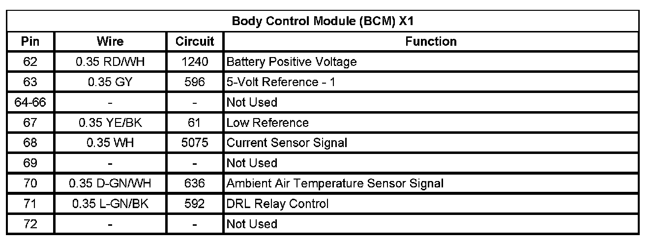 Body Control Module (BCM) X1 (Pin 62 To 72):