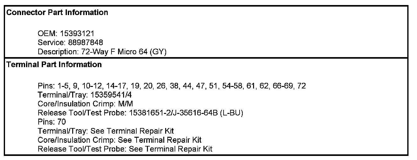 Body Control Module (BCM) X2 (Pin 1 To 71):
