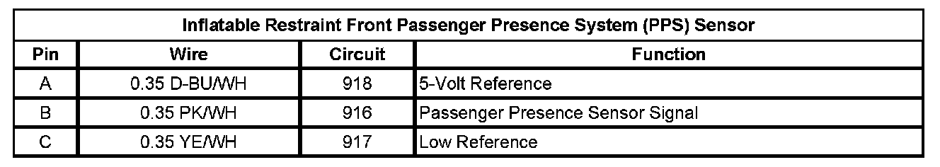 Inflatable Restraint Front Passenger Presence System (PPS) Sensor