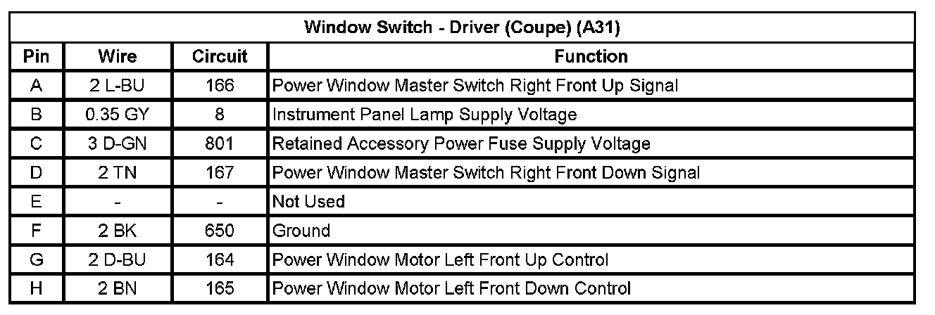 Window Switch - Driver (Coupe) (A31)
