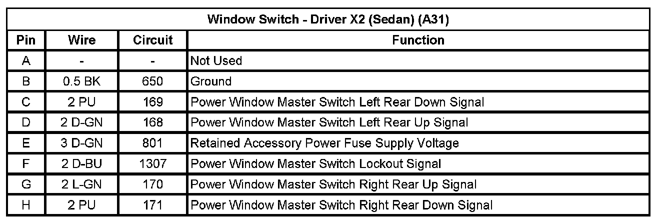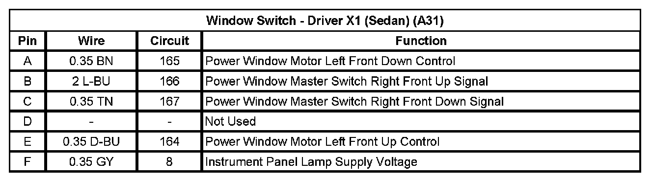 Window Switch - Driver X2 (Sedan) (A31)