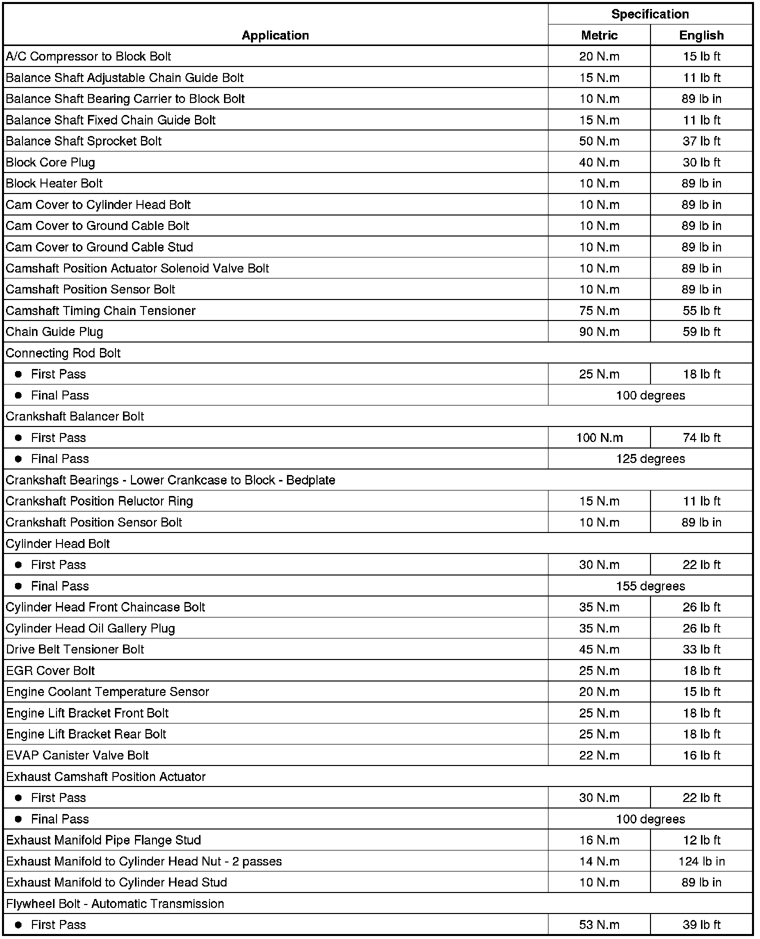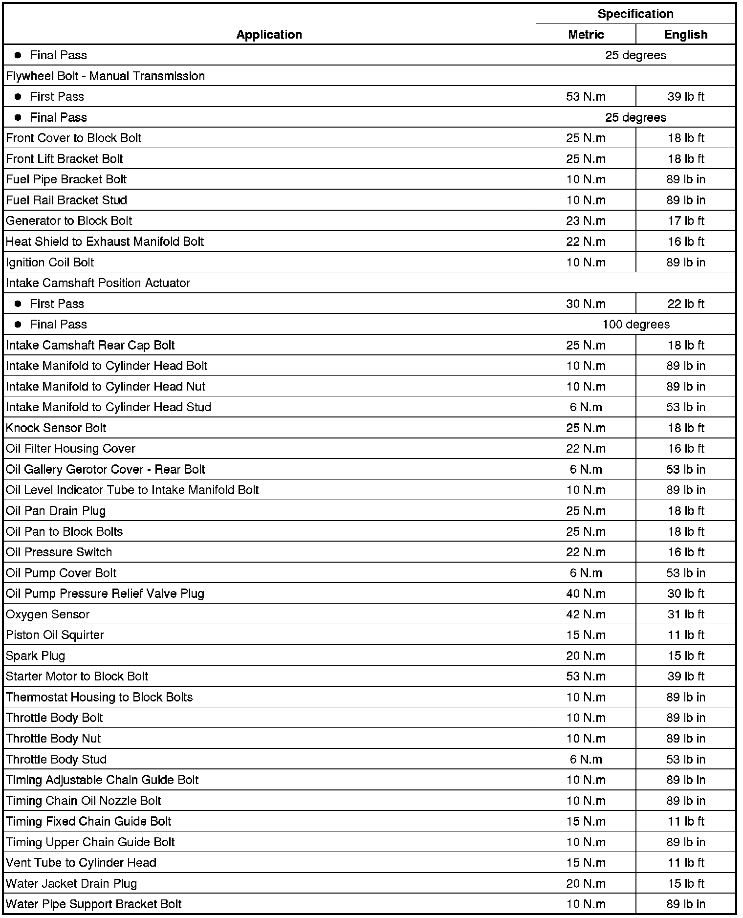 Fastener Tightening Specifications