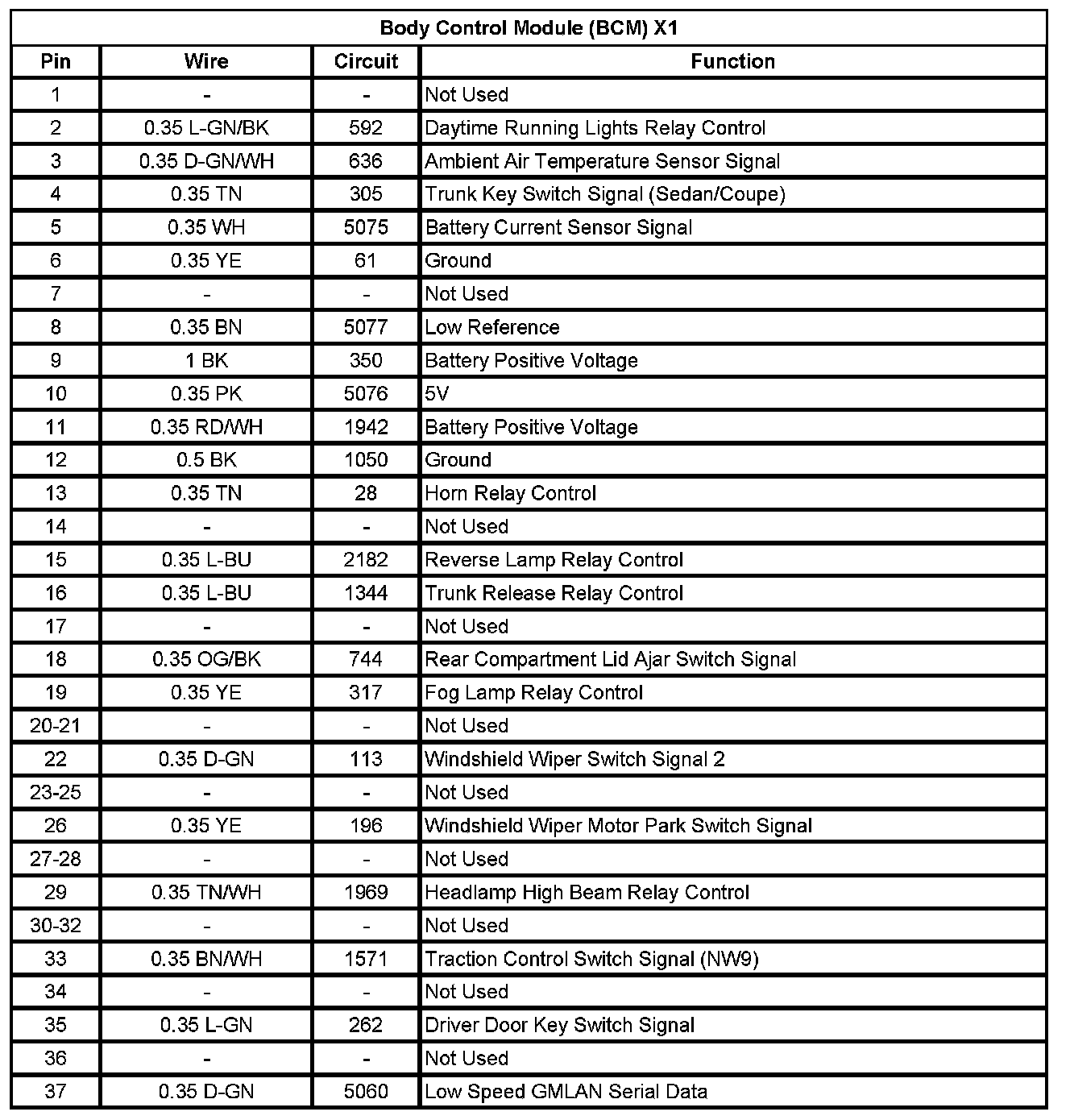 Body Control Module (BCM) X1 (Pin 1 To 37):