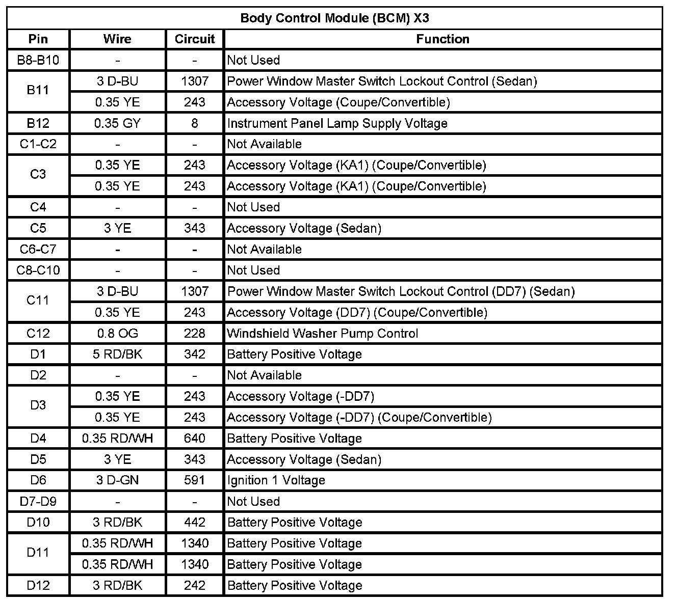 Body Control Module (BCM) X3 (Pin B8 To D12):