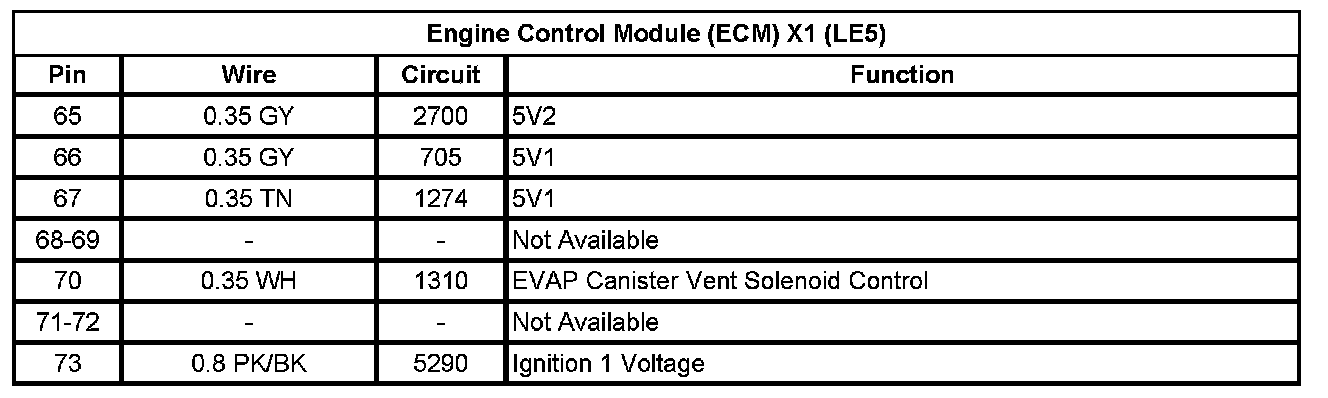 Engine Control Module (ECM) X1 (LE5) ( Pin 65 To 73):